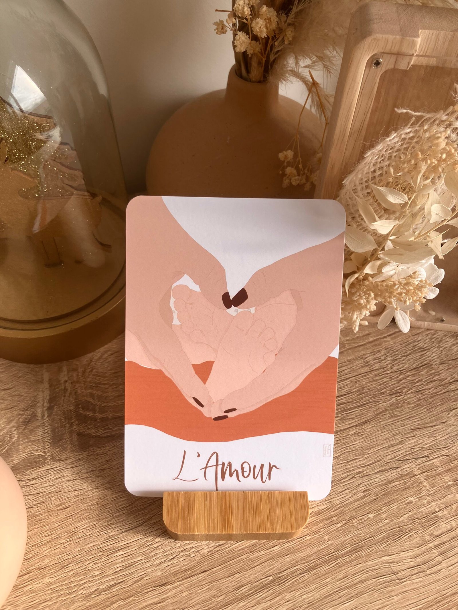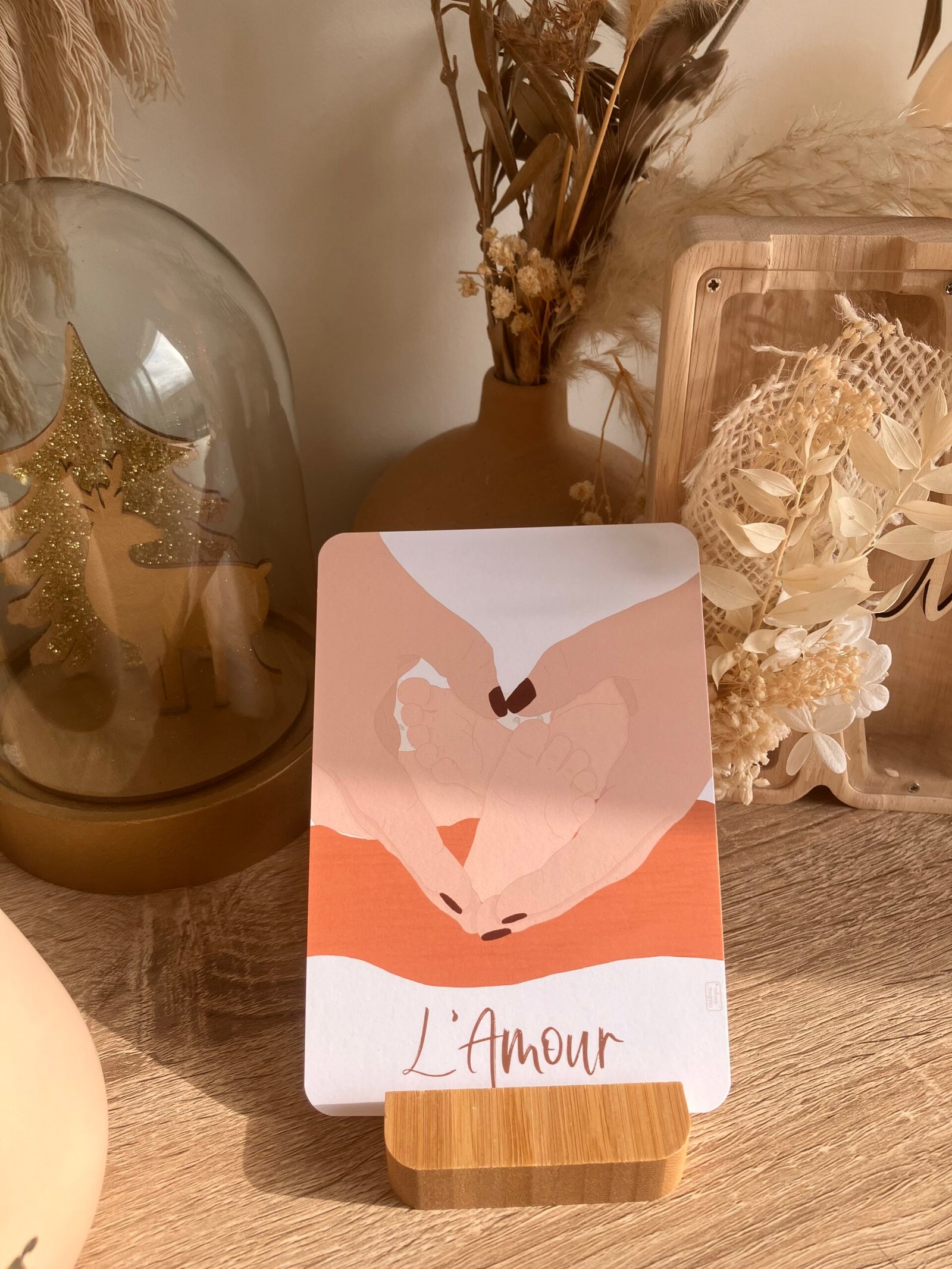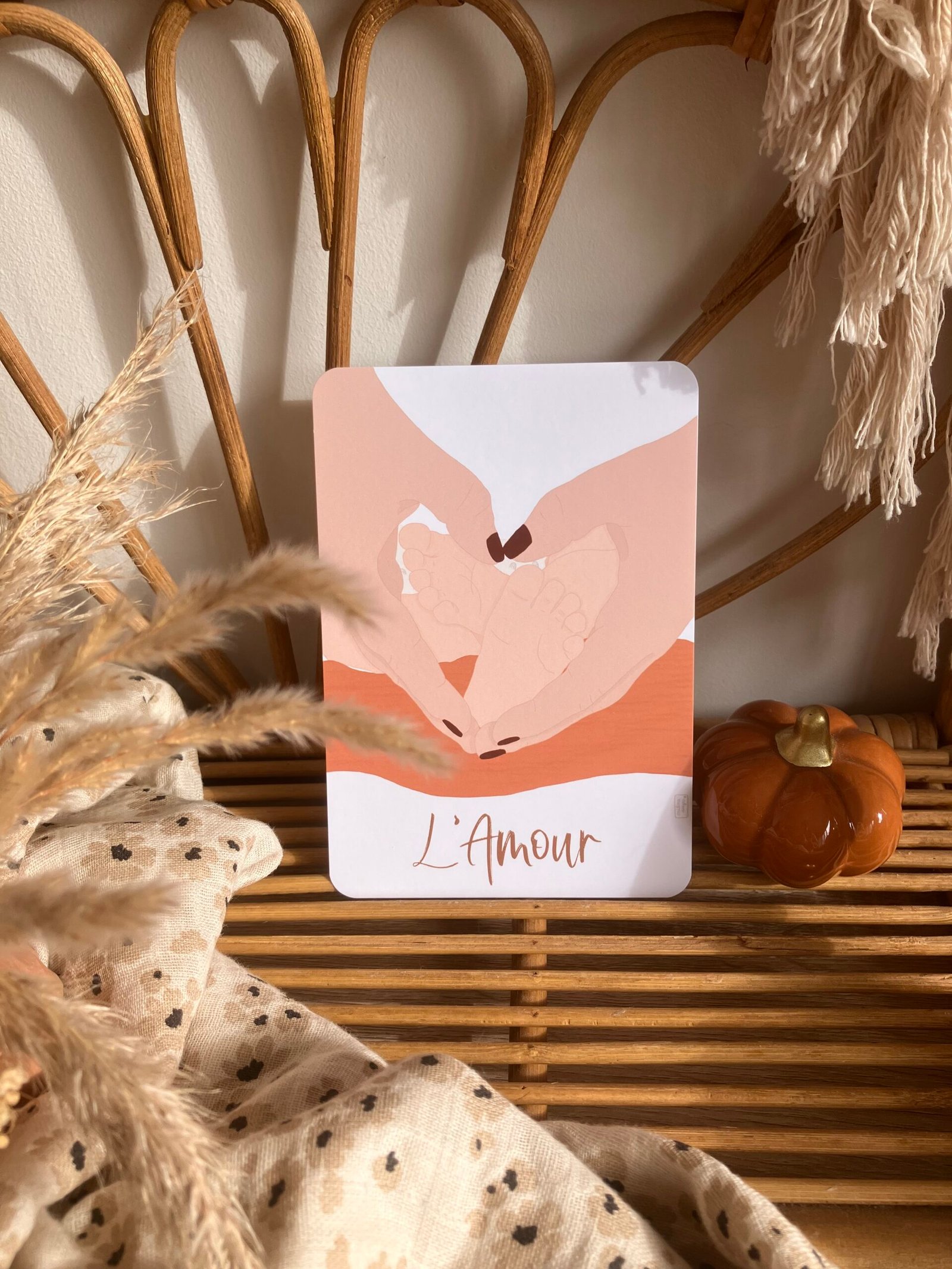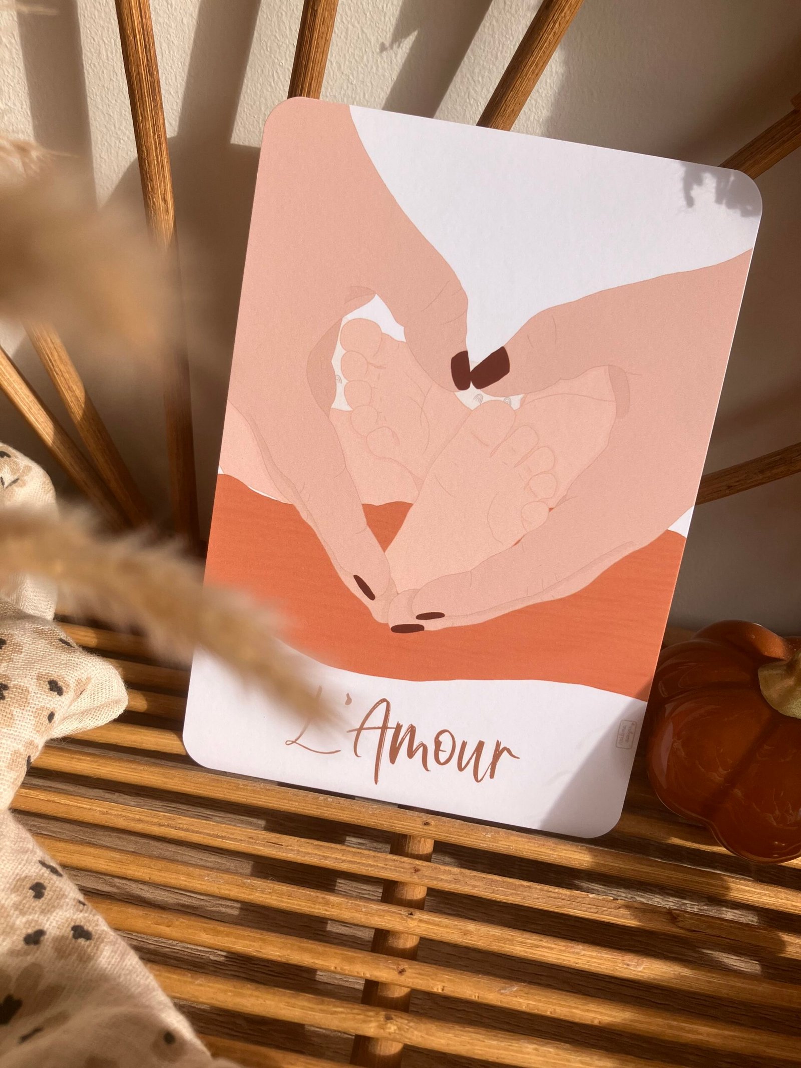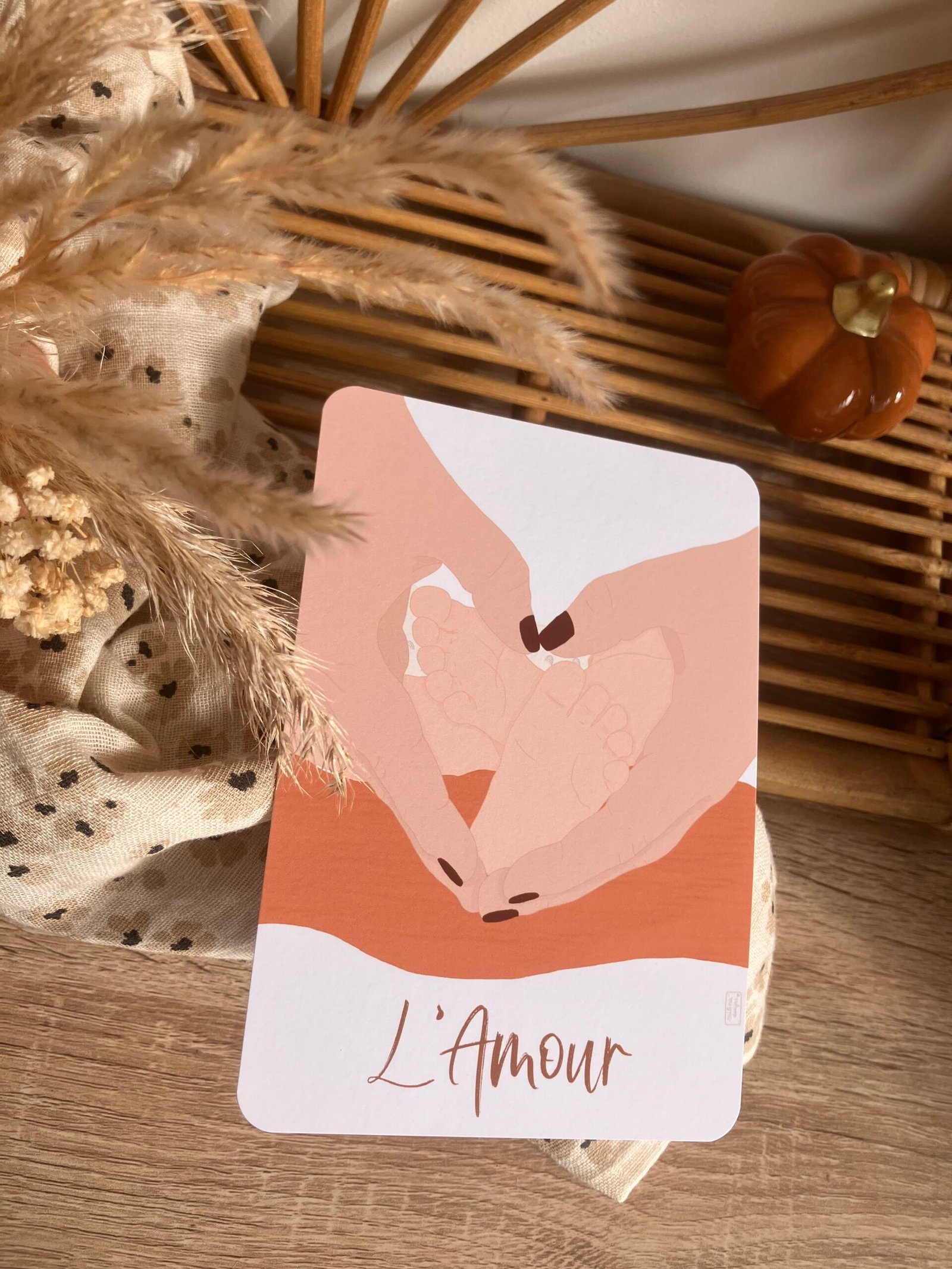 Cette douce carte au format A6 est réalisée et imprimée de façon artisanale par mes soins dans le sud de la France sur un papier rigide de haute qualité créé par une entreprise française, les coins sont arrondis pour plus de douceur.