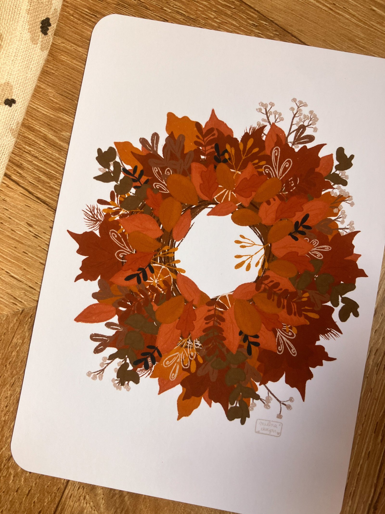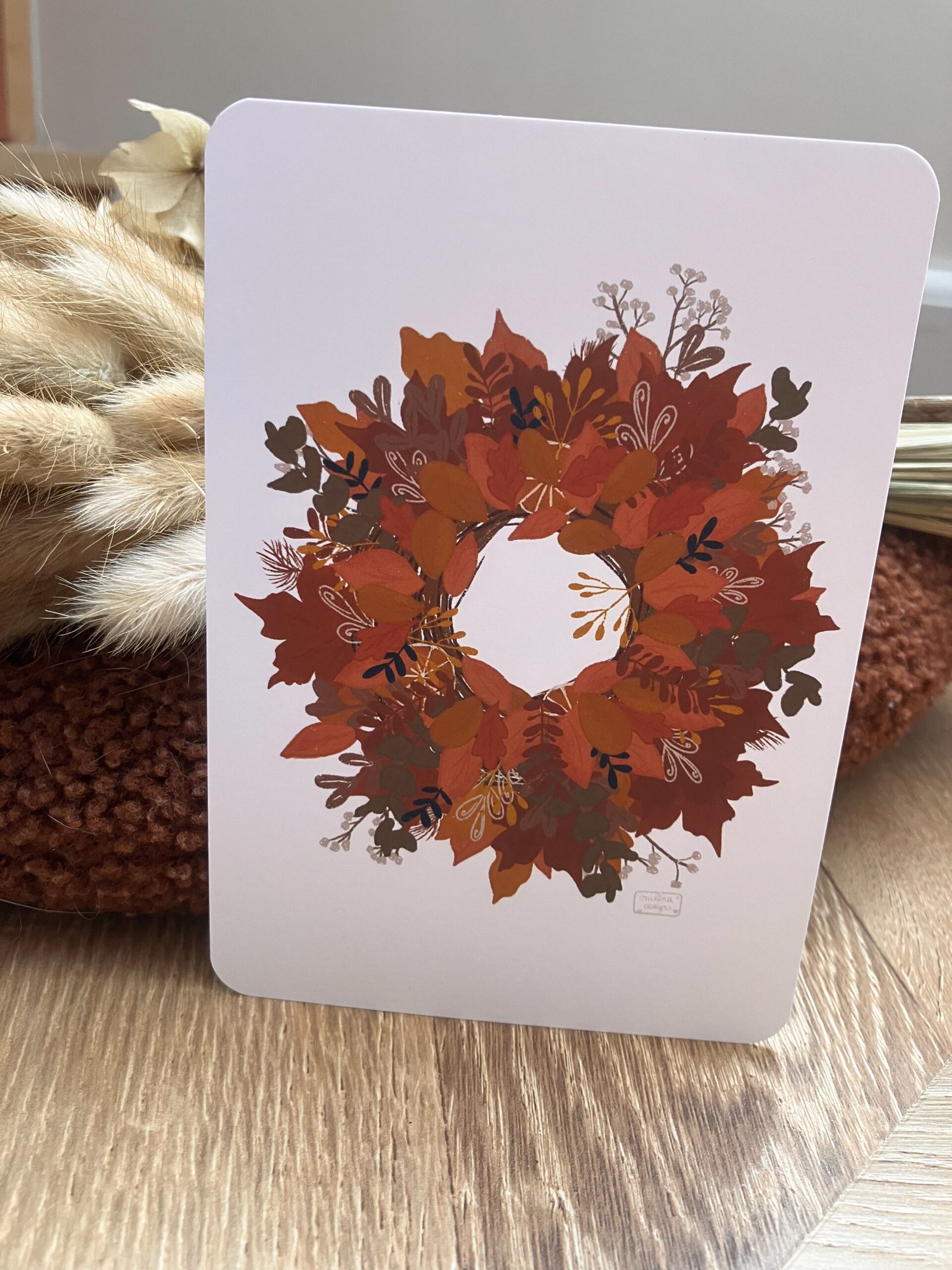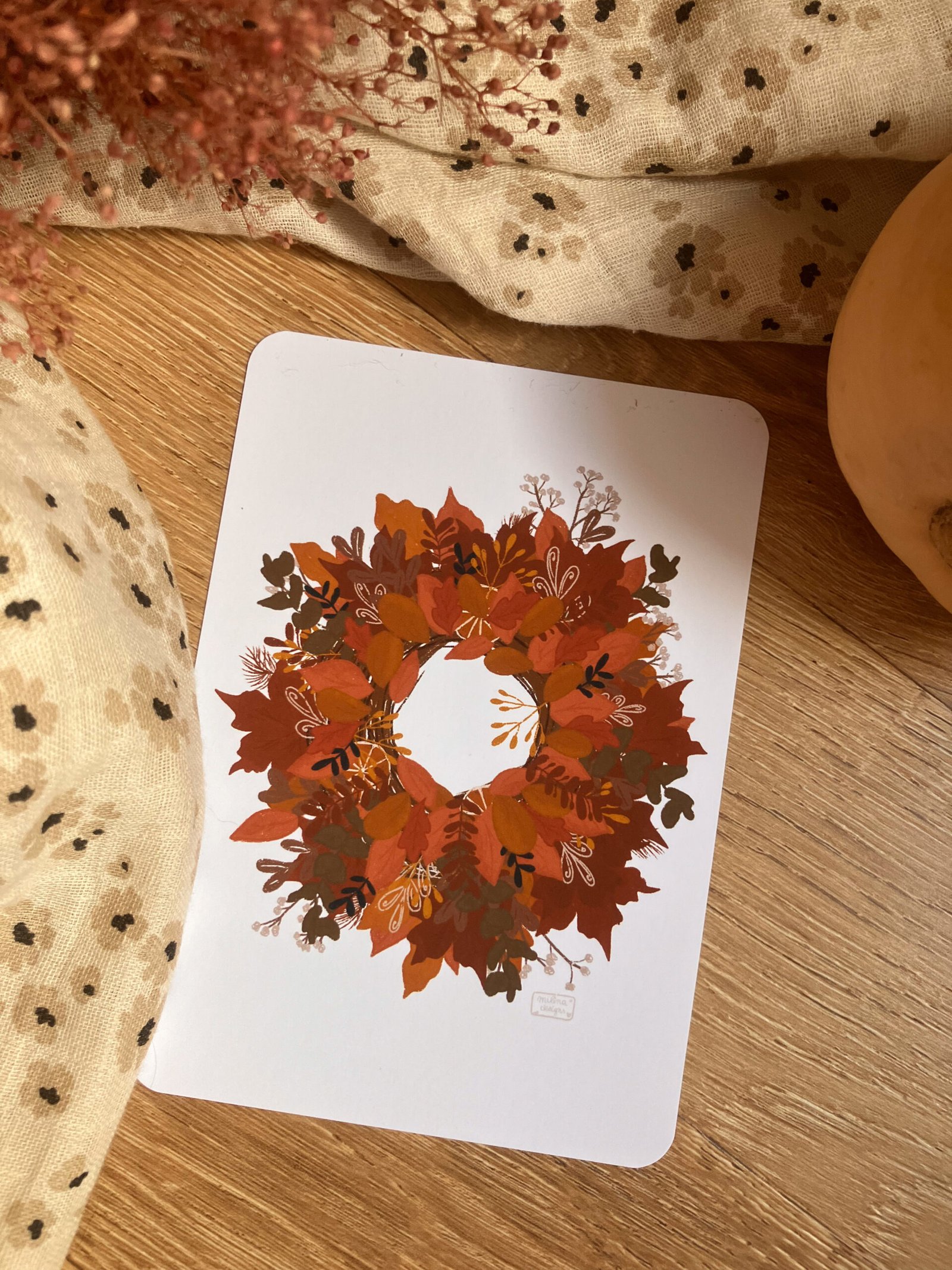 Une jolie carte réconfortante d’une illustration très détaillée d’une jolie couronne automnale 🤎