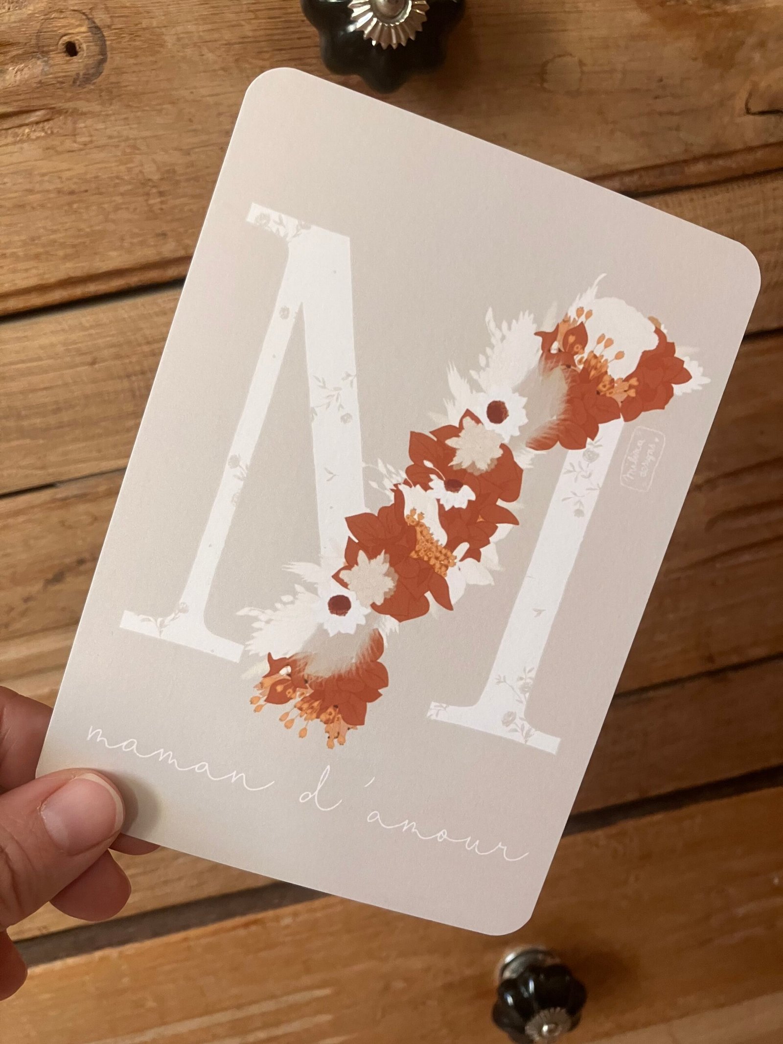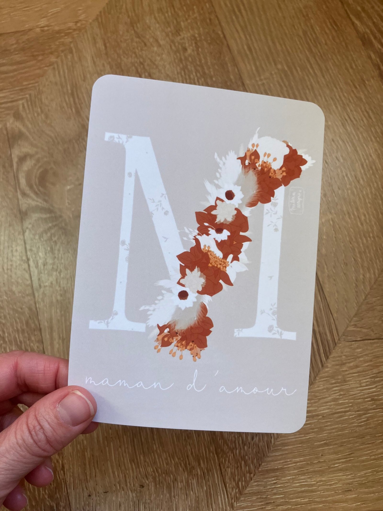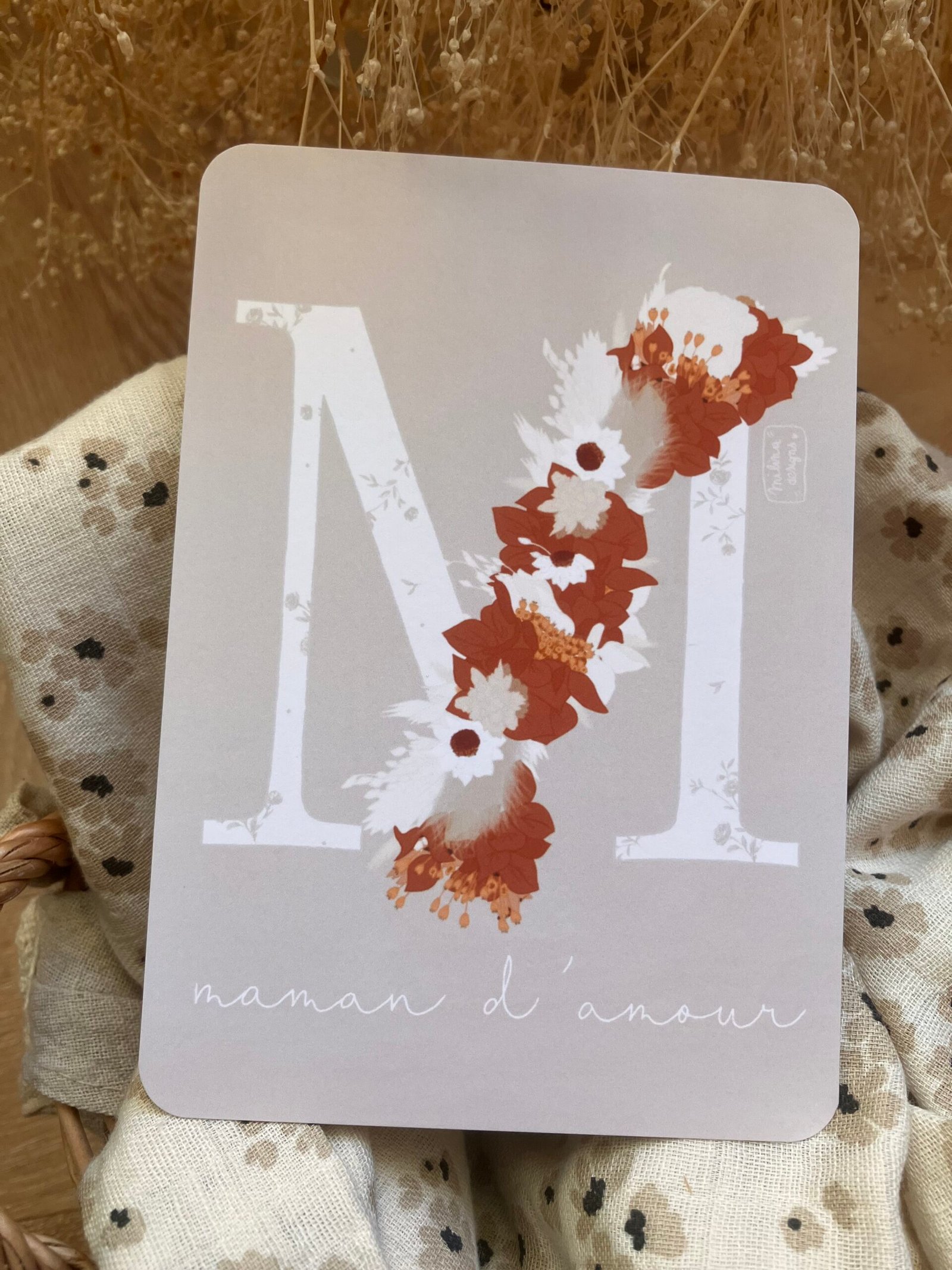 Cette douce carte au format A6 est réalisée et imprimée de façon artisanale par mes soins dans le sud de la France sur un papier rigide de haute qualité créé par une entreprise française, les coins sont arrondis pour plus de douceur.