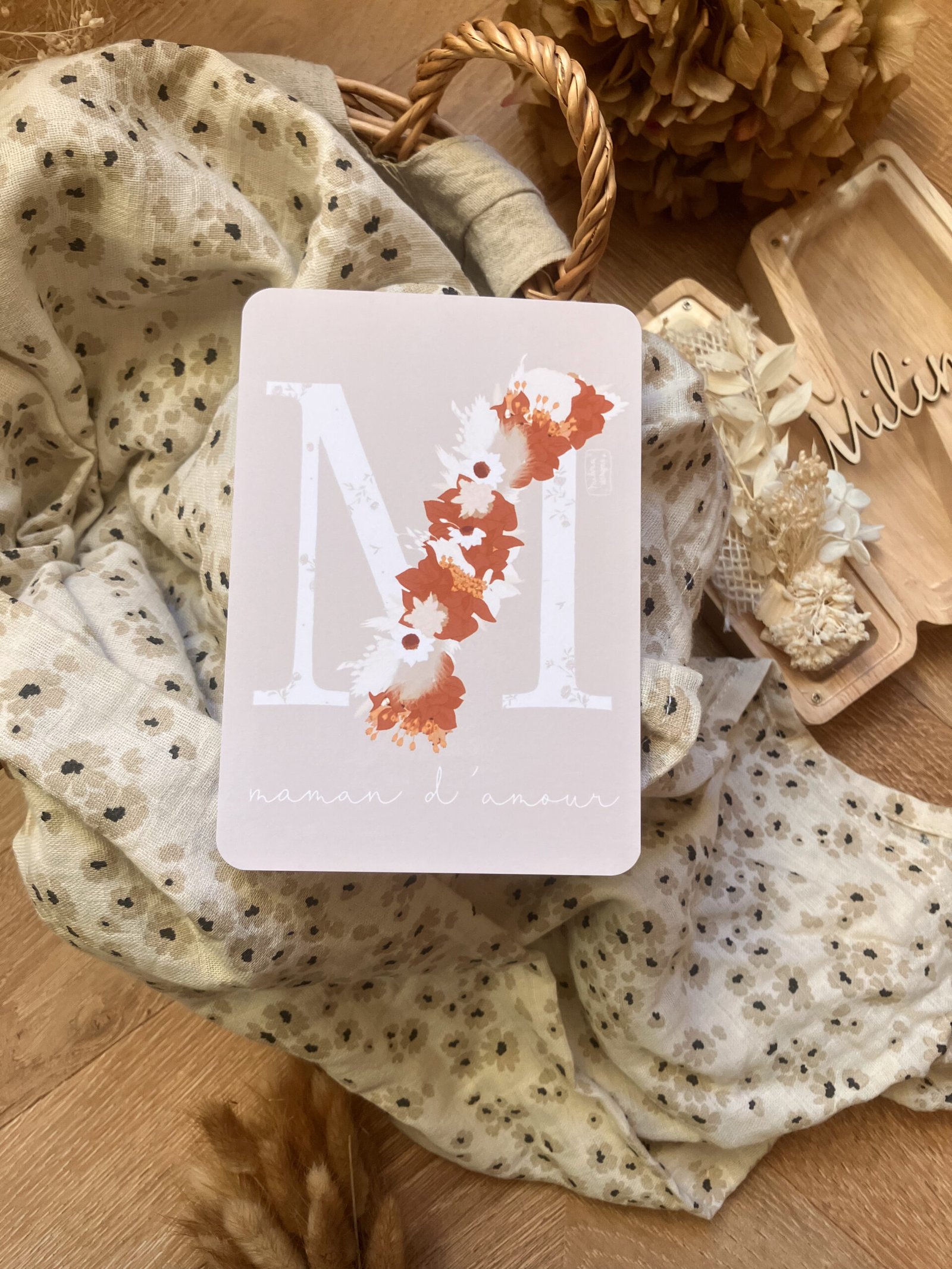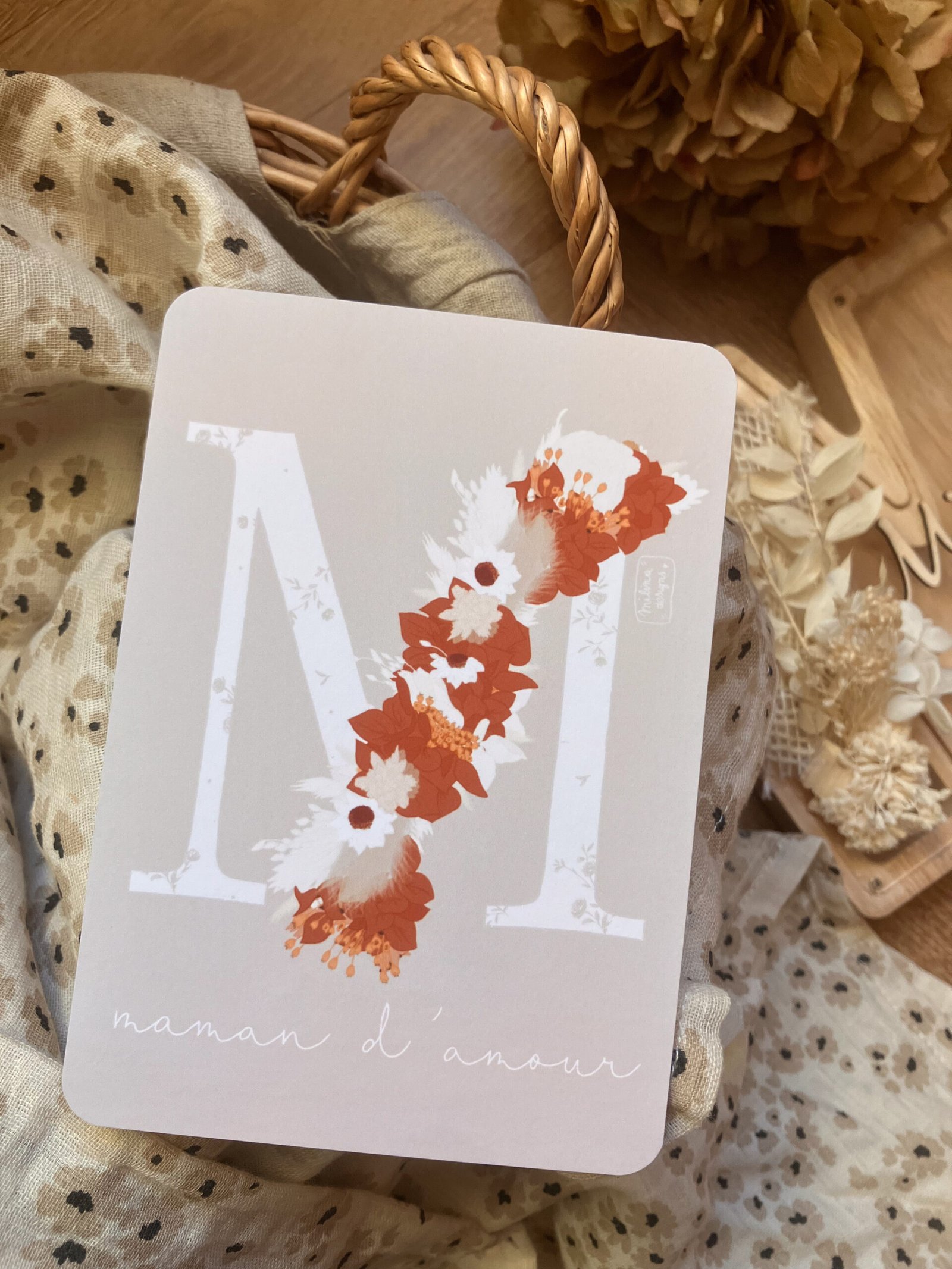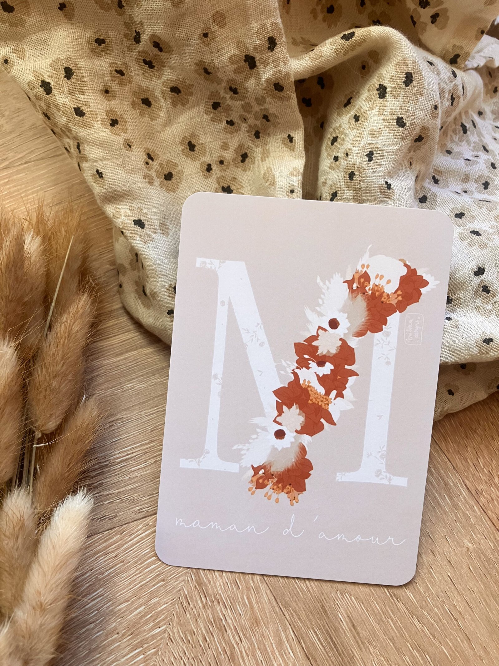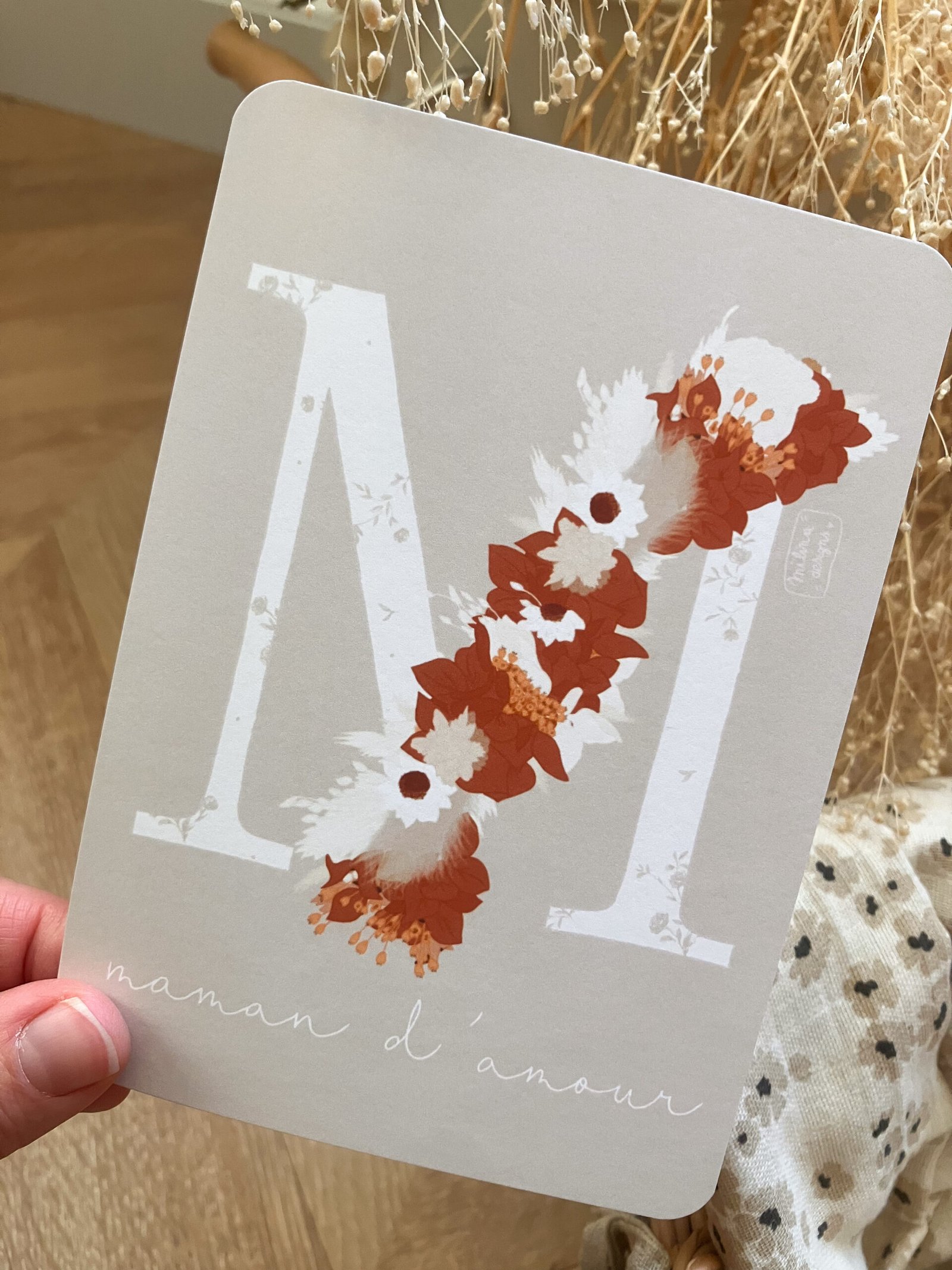 Cette douce carte au format A6 est réalisée et imprimée de façon artisanale par mes soins dans le sud de la France sur un papier rigide de haute qualité créé par une entreprise française, les coins sont arrondis pour plus de douceur.