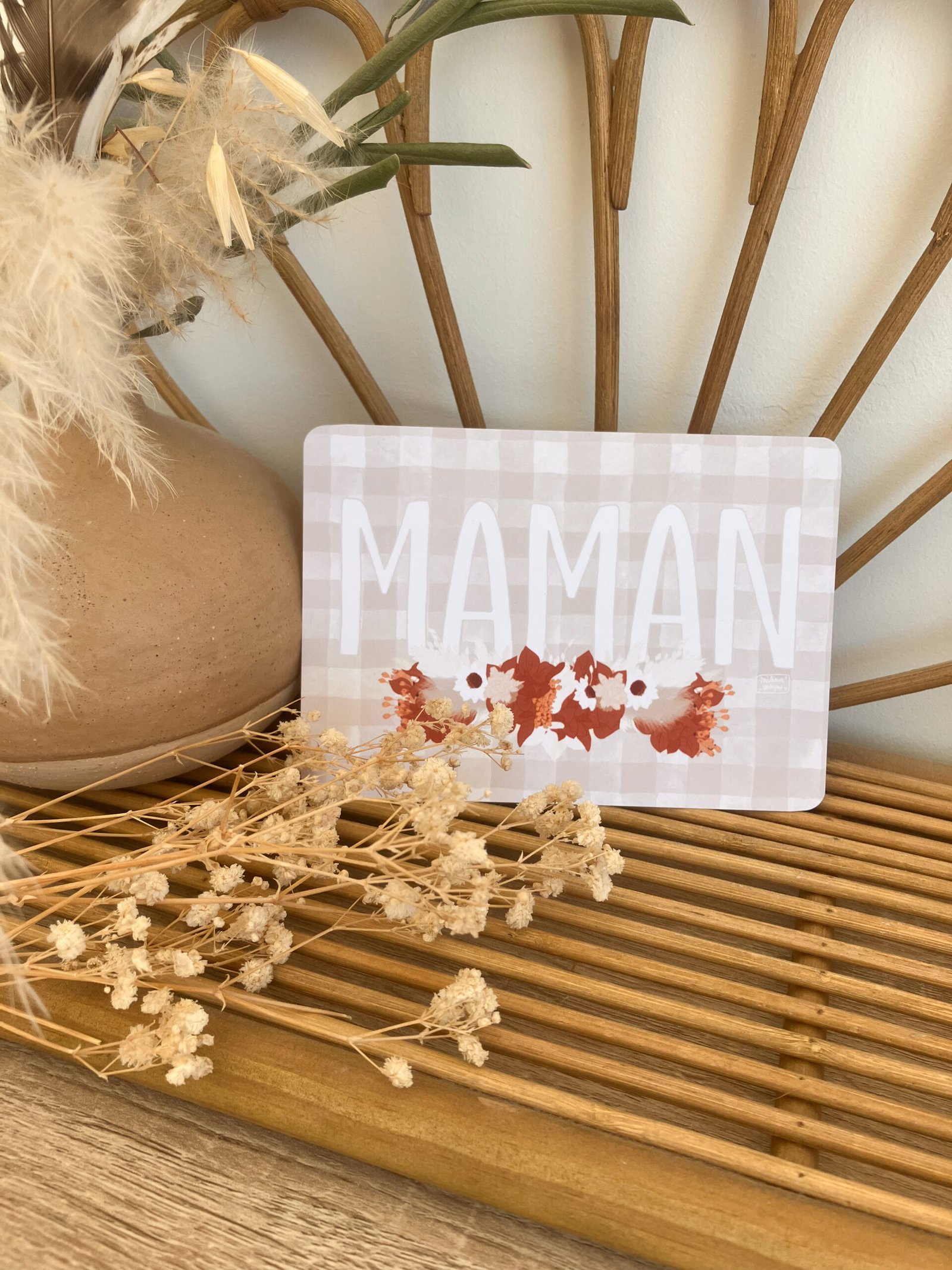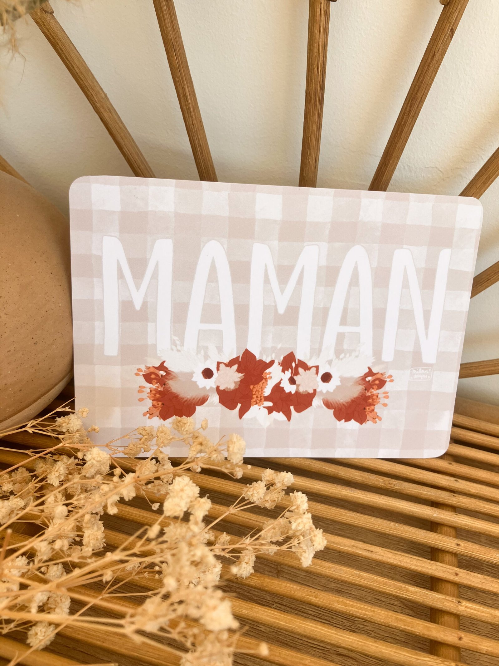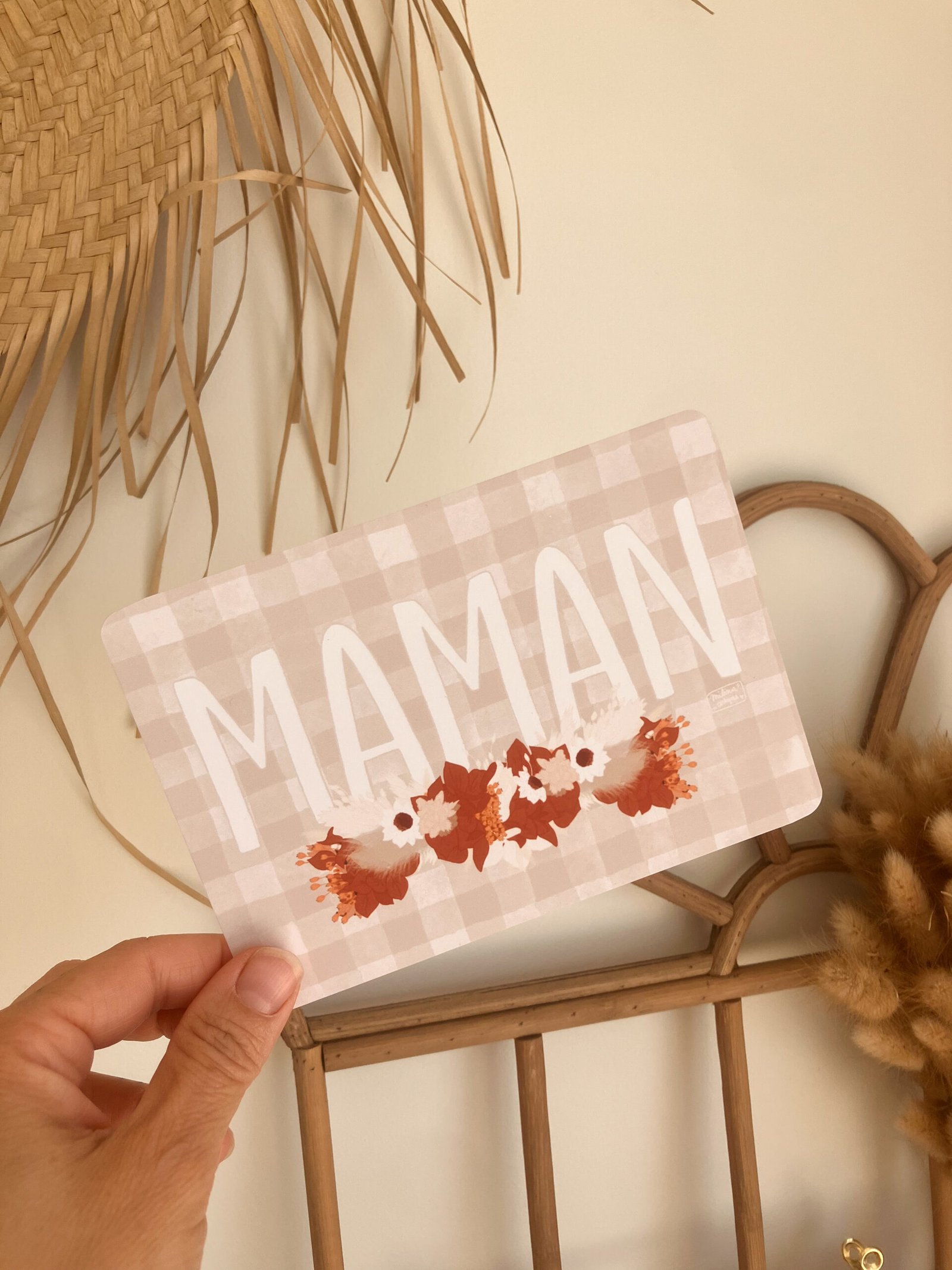 Cette douce carte au format A6 est réalisée et imprimée de façon artisanale par mes soins dans le sud de la France sur un papier rigide de haute qualité créé par une entreprise française, les coins sont arrondis pour plus de douceur.