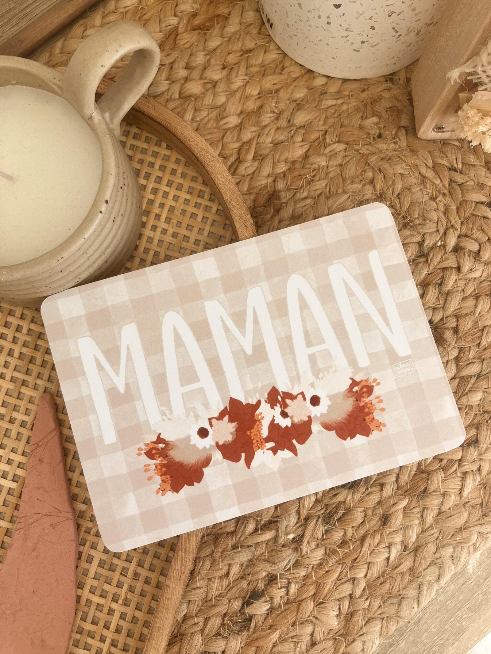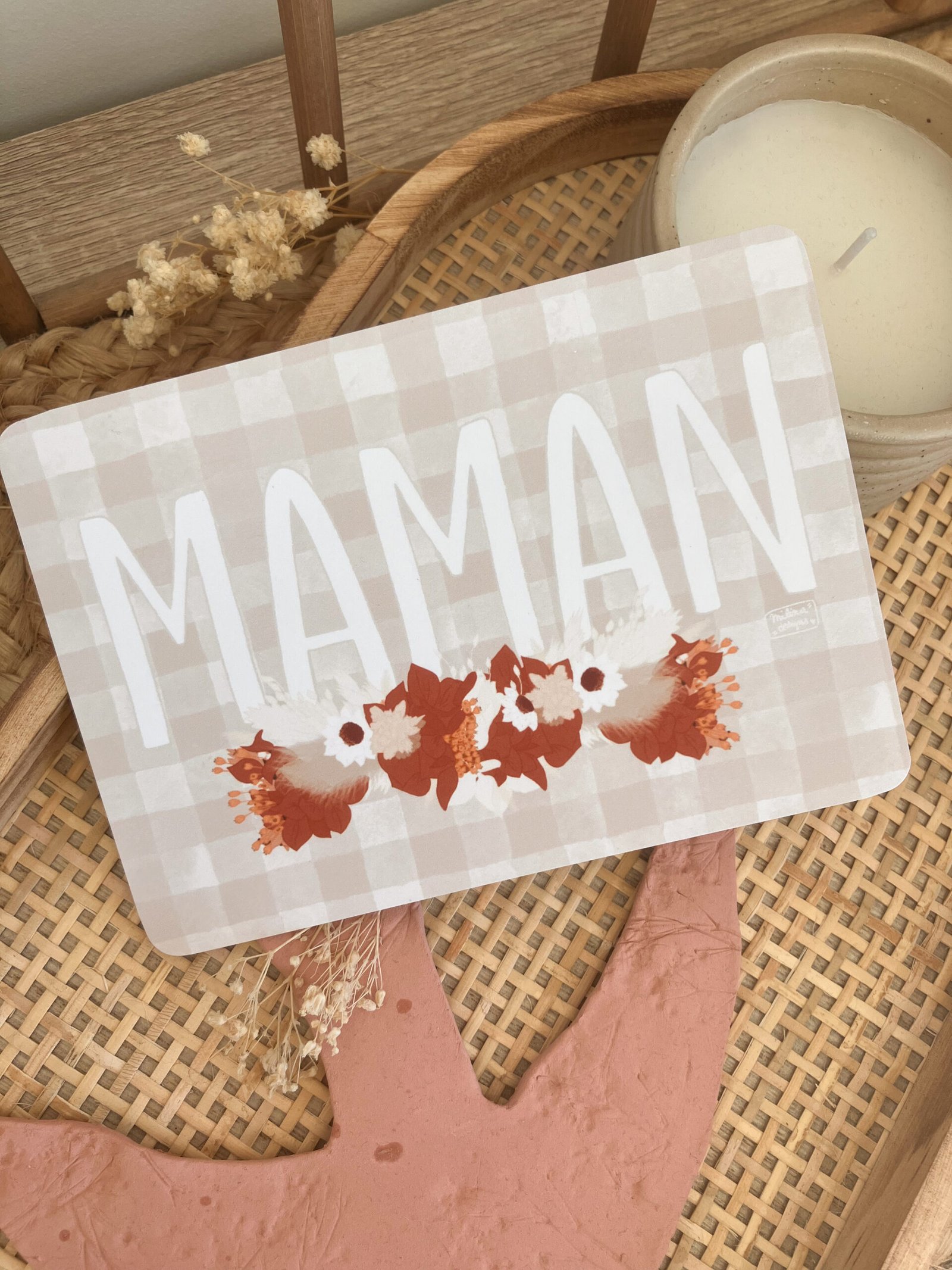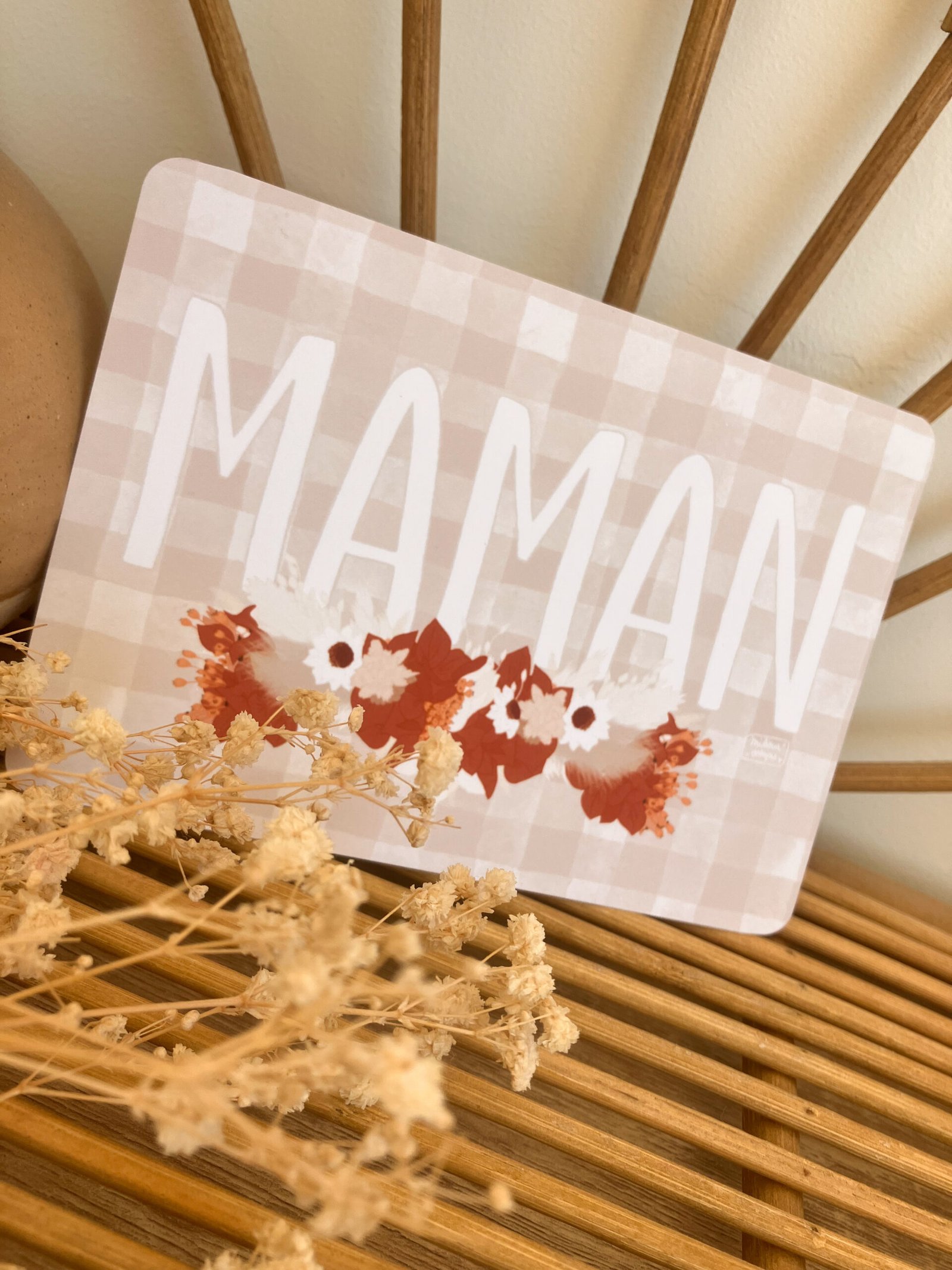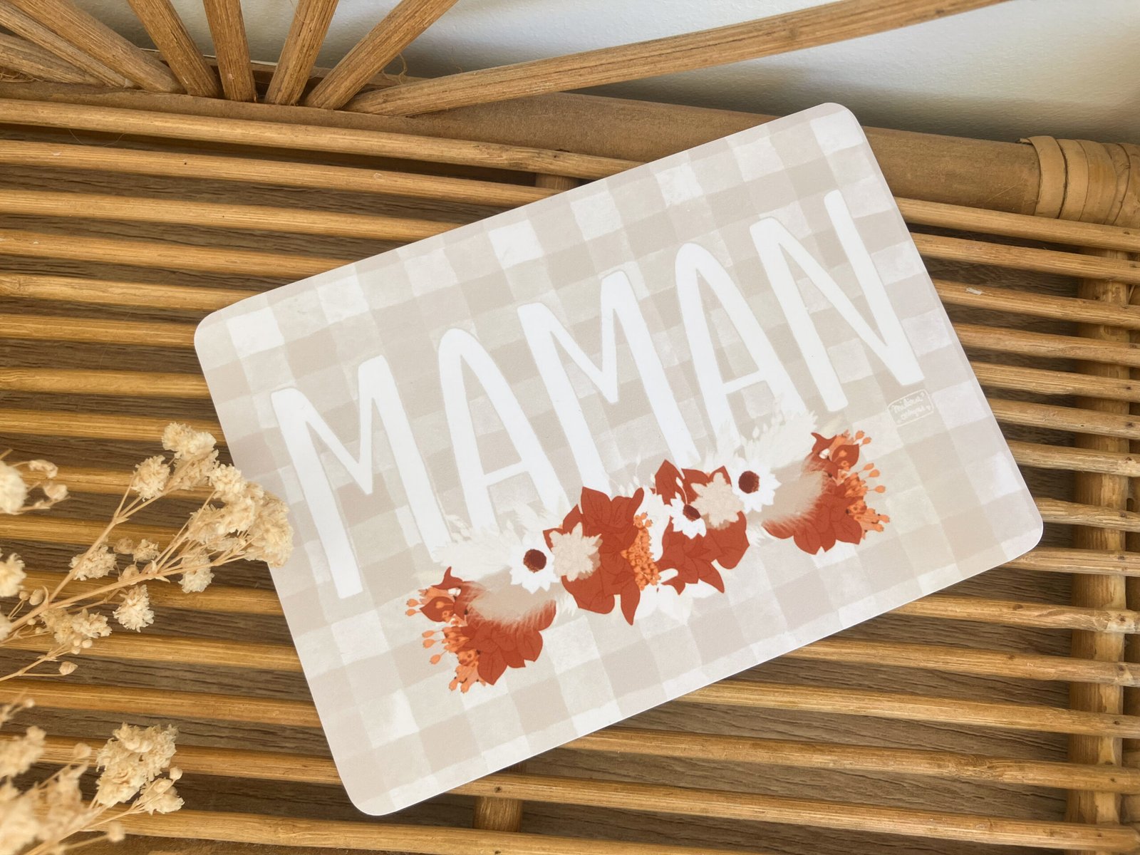 Cette douce carte au format A6 est réalisée et imprimée de façon artisanale par mes soins dans le sud de la France sur un papier rigide de haute qualité créé par une entreprise française, les coins sont arrondis pour plus de douceur.