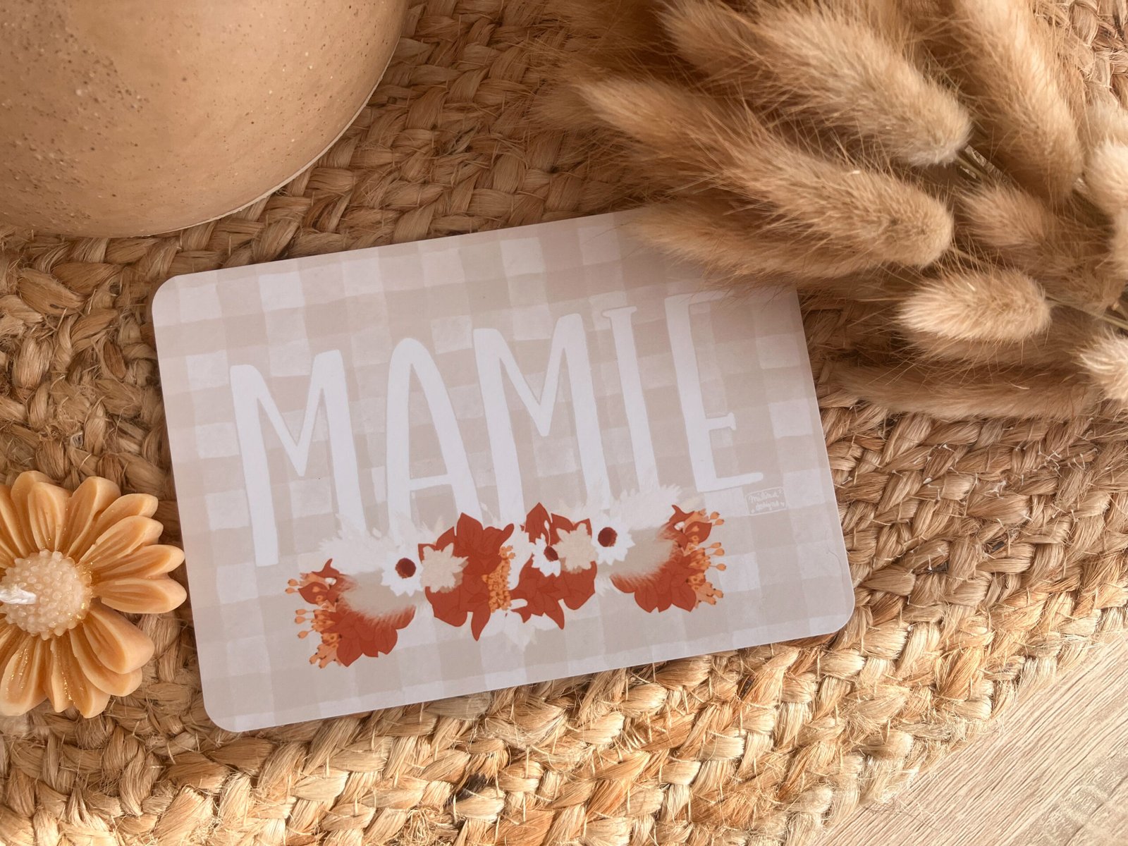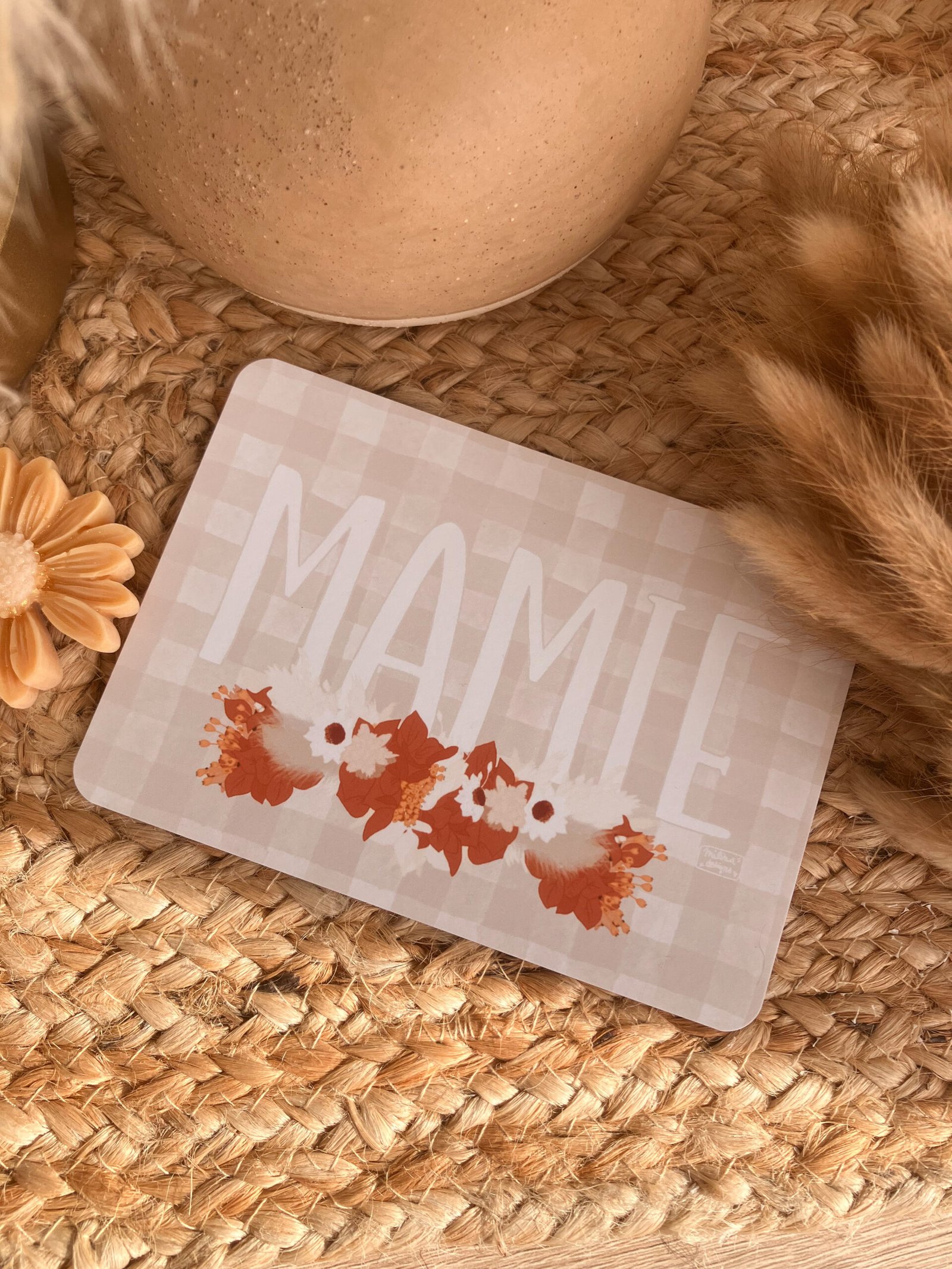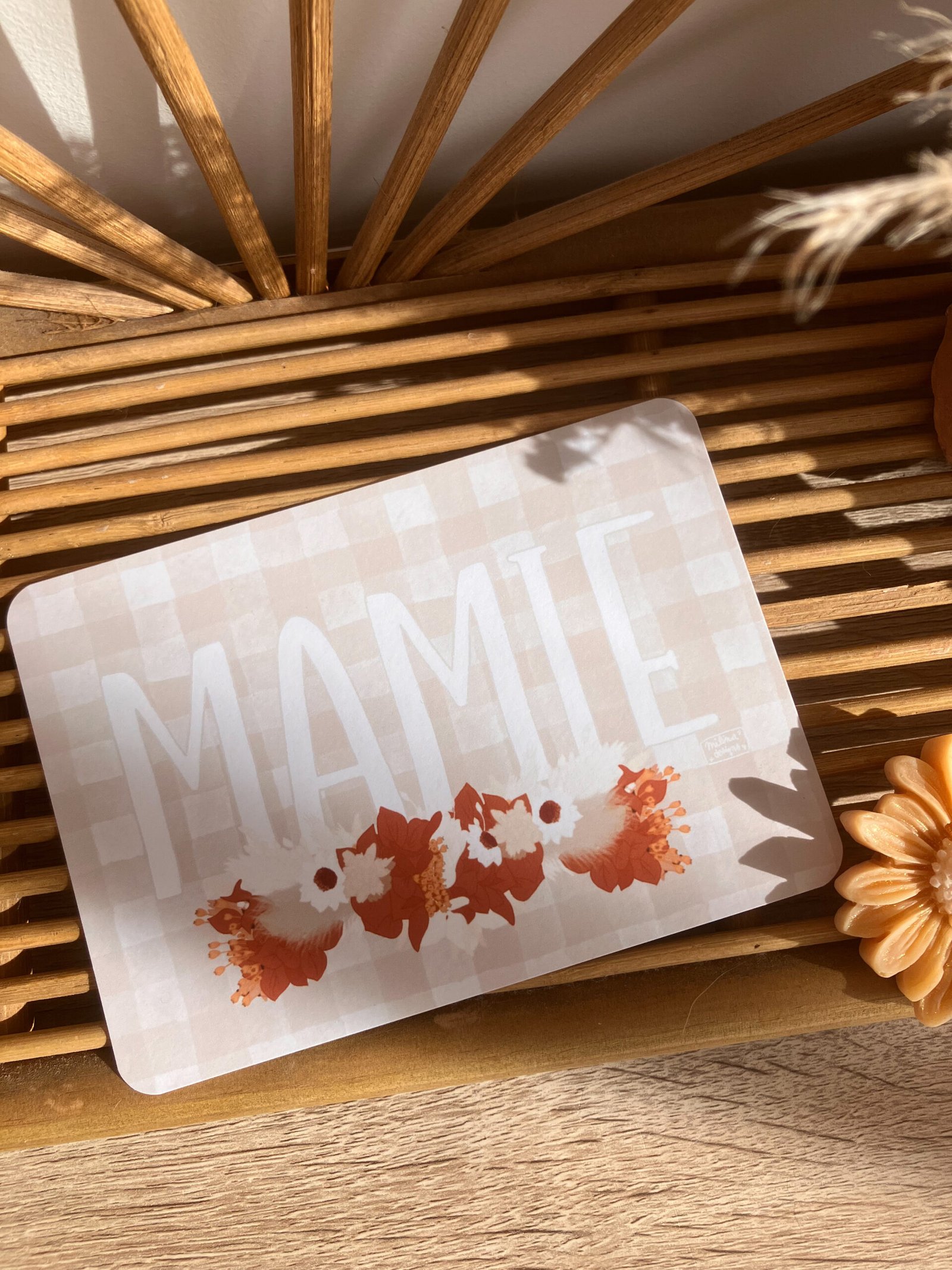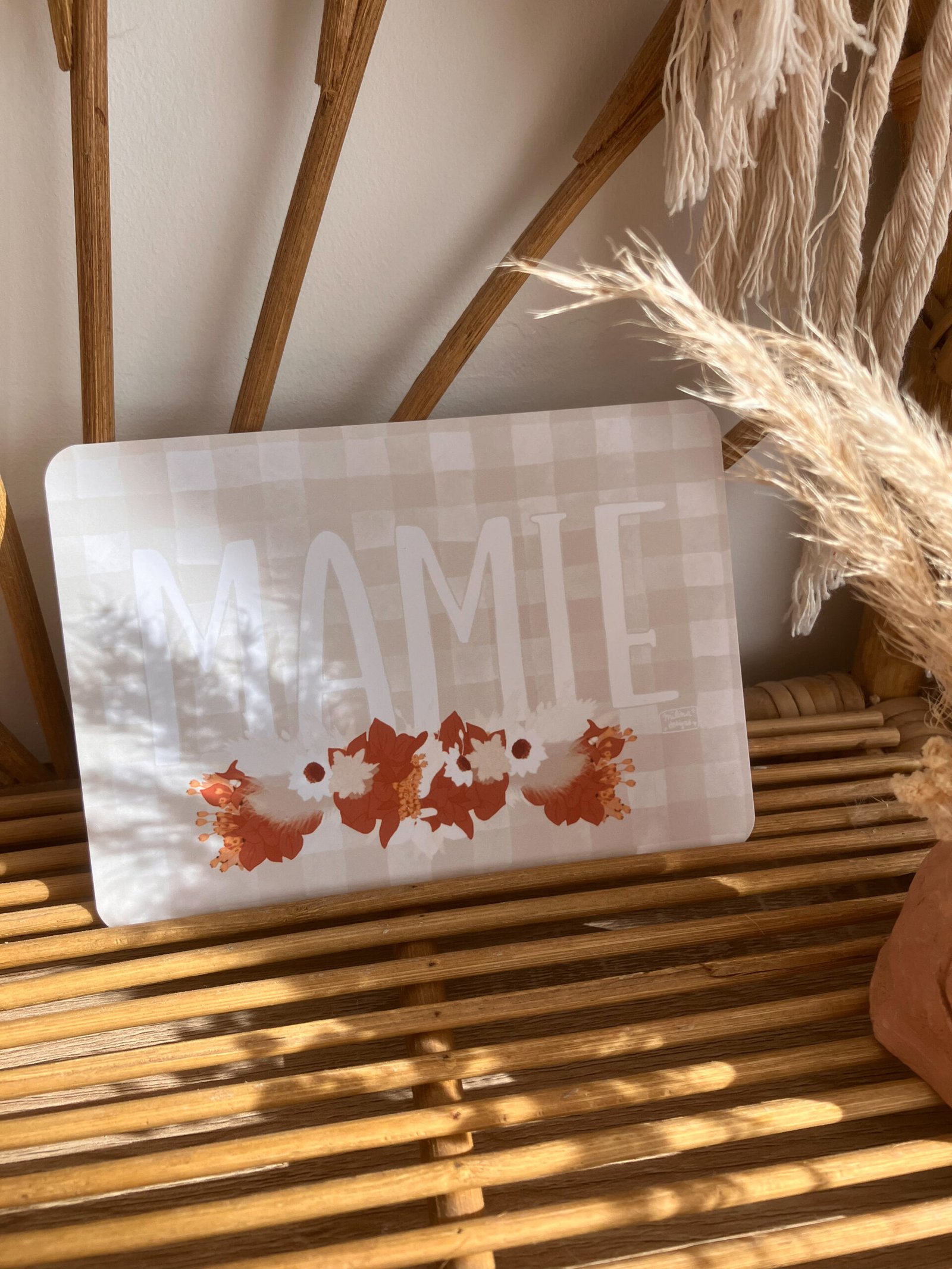 Cette jolie carte aux couleurs douces, avec ses fleurs et son motif vichy très tendance décorera à merveille vos jolis murs ou sera une petite attention idéale à offrir .