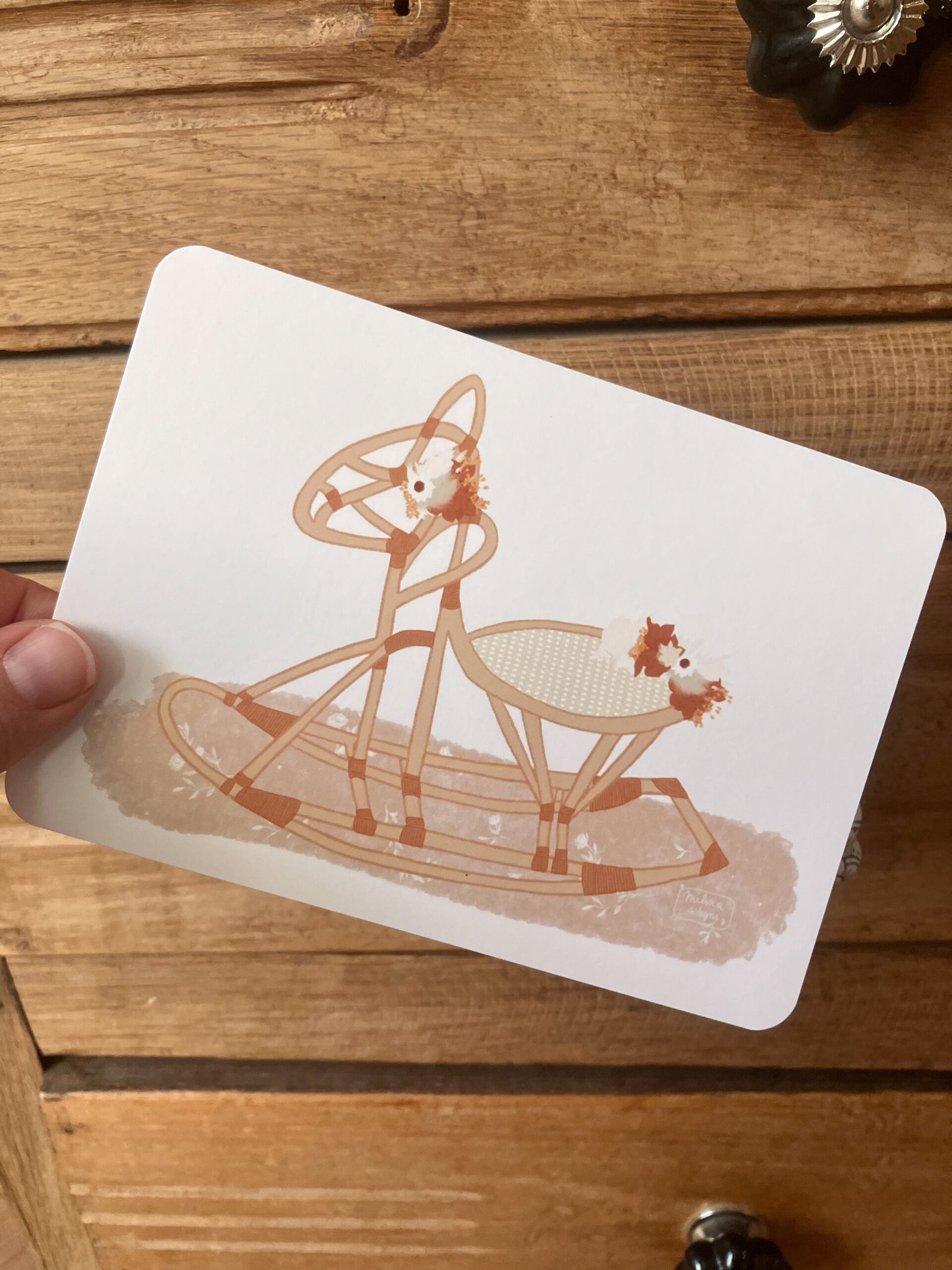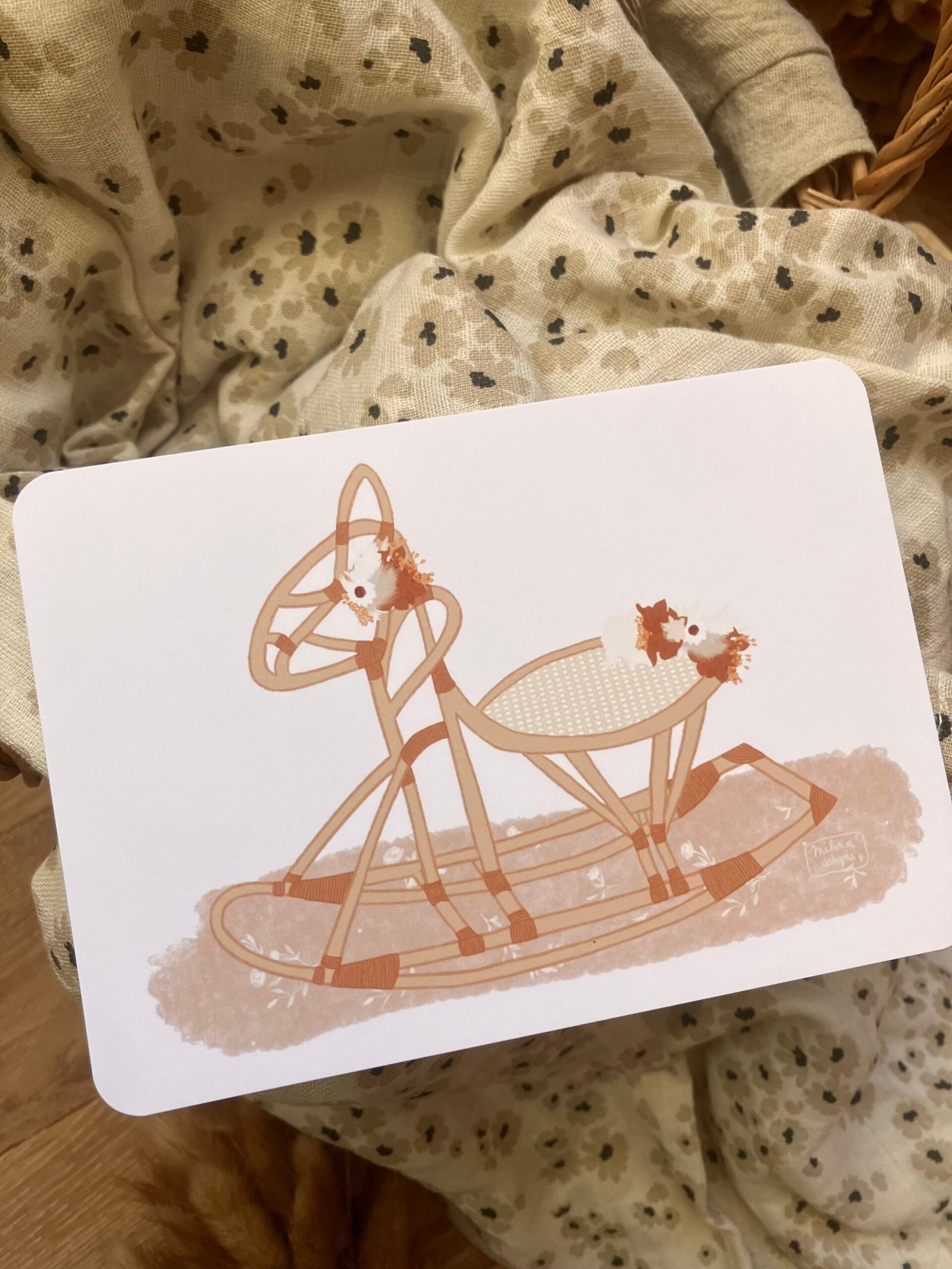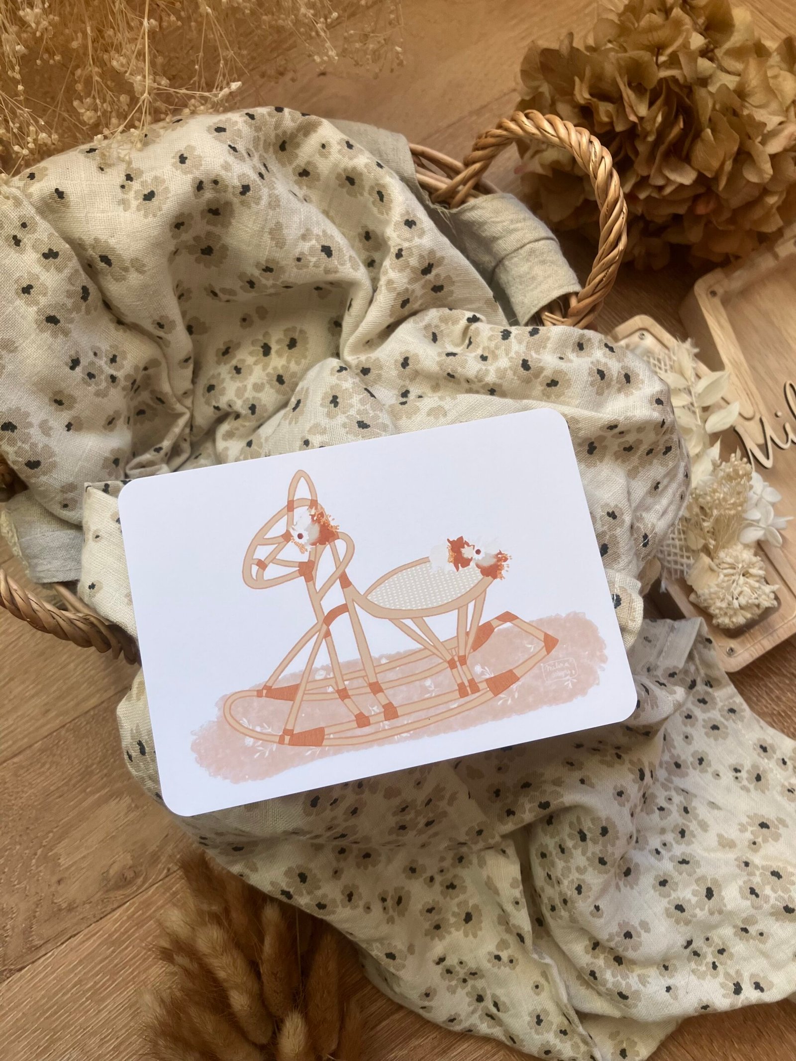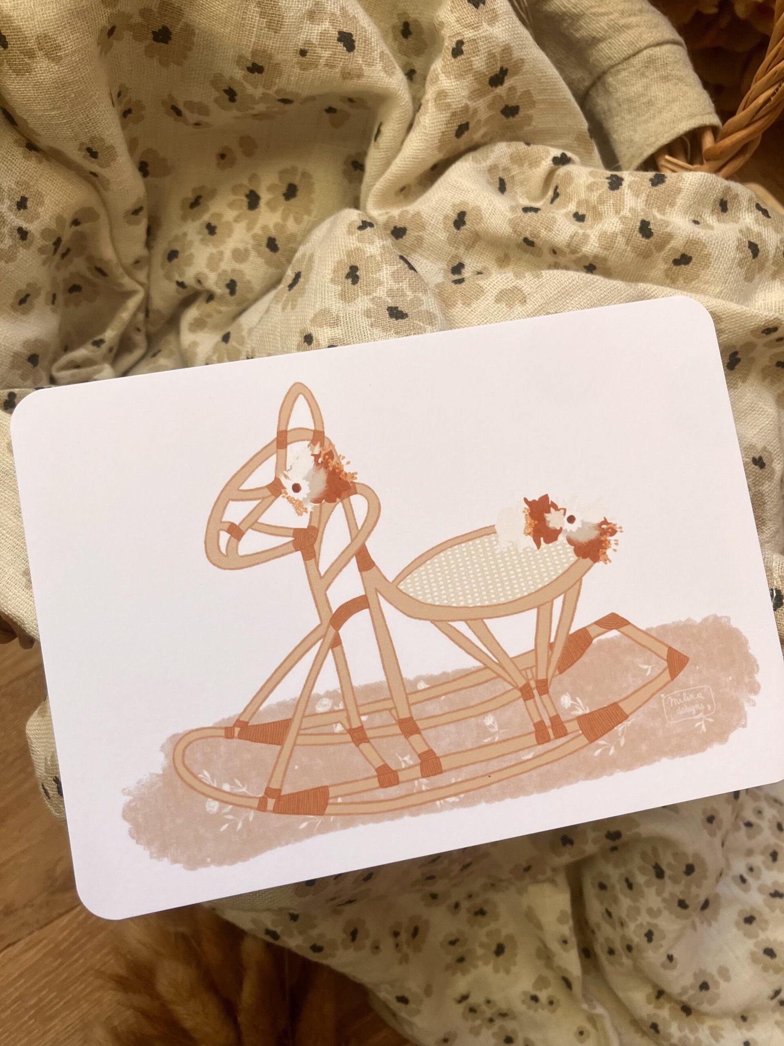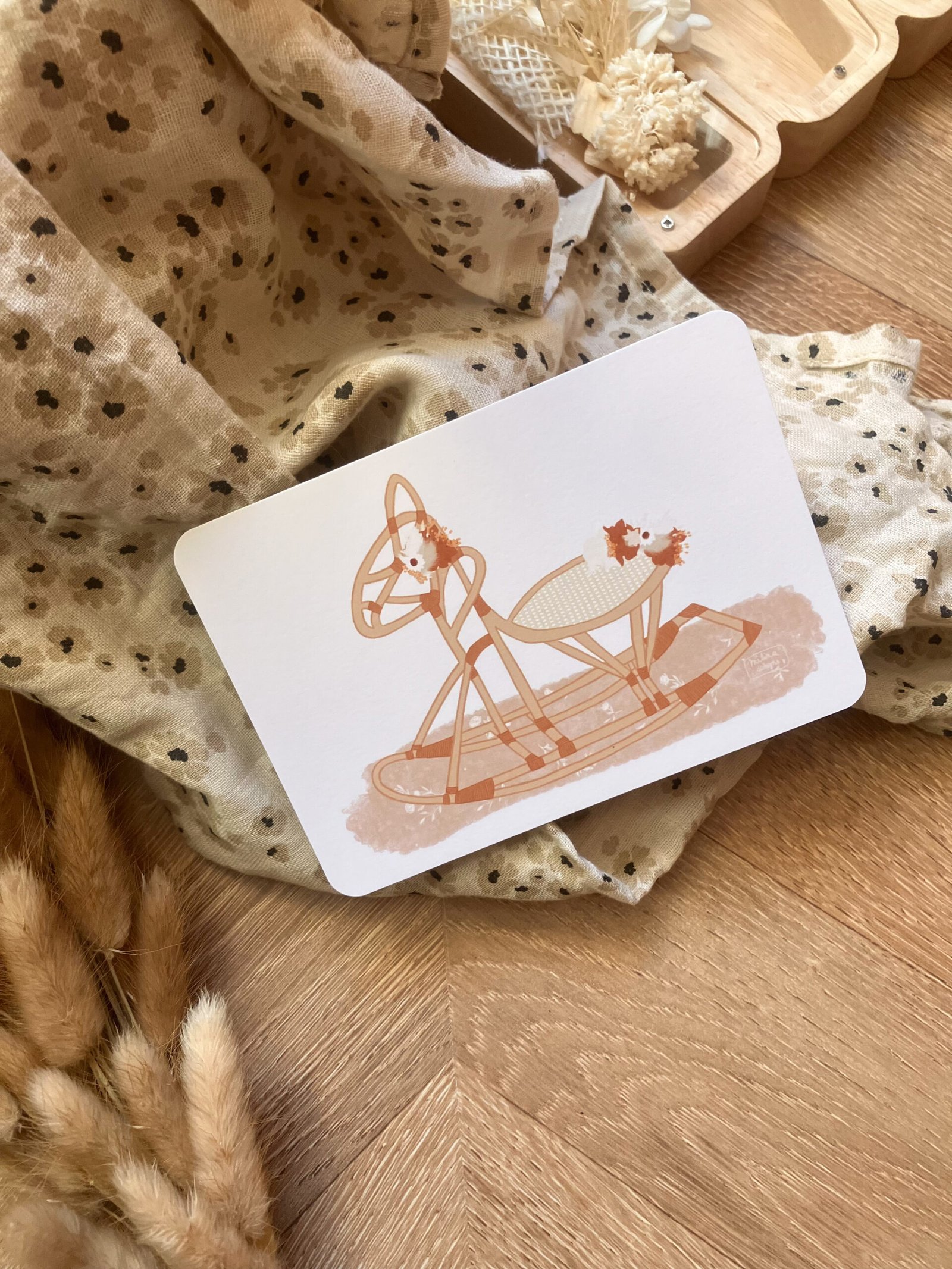 Cette douce carte au format A6 est réalisée et imprimée de façon artisanale par mes soins dans le sud de la France sur un papier rigide de haute qualité créé par une entreprise française, les coins sont arrondis pour plus de douceur.