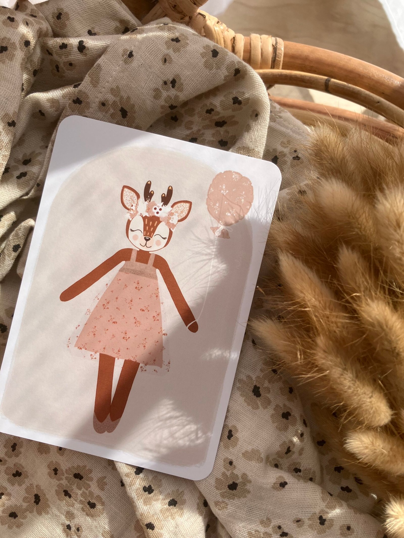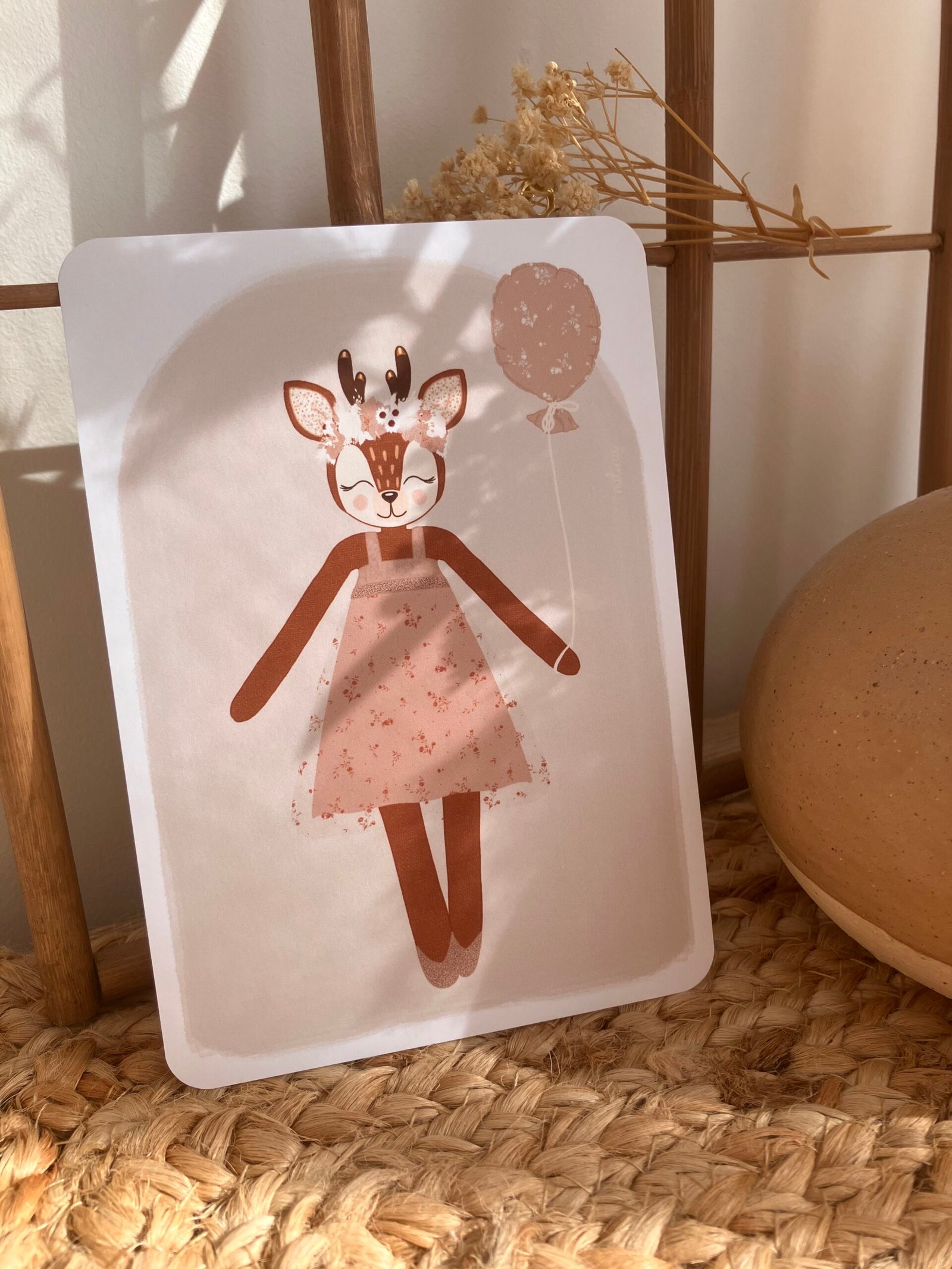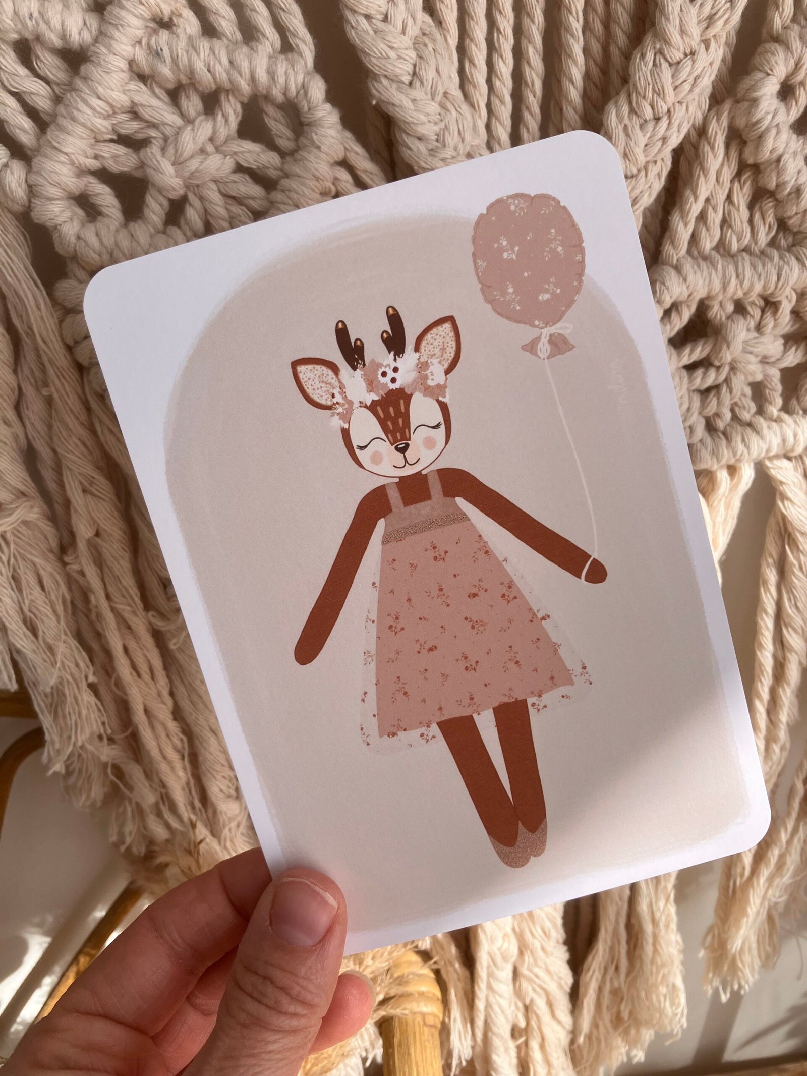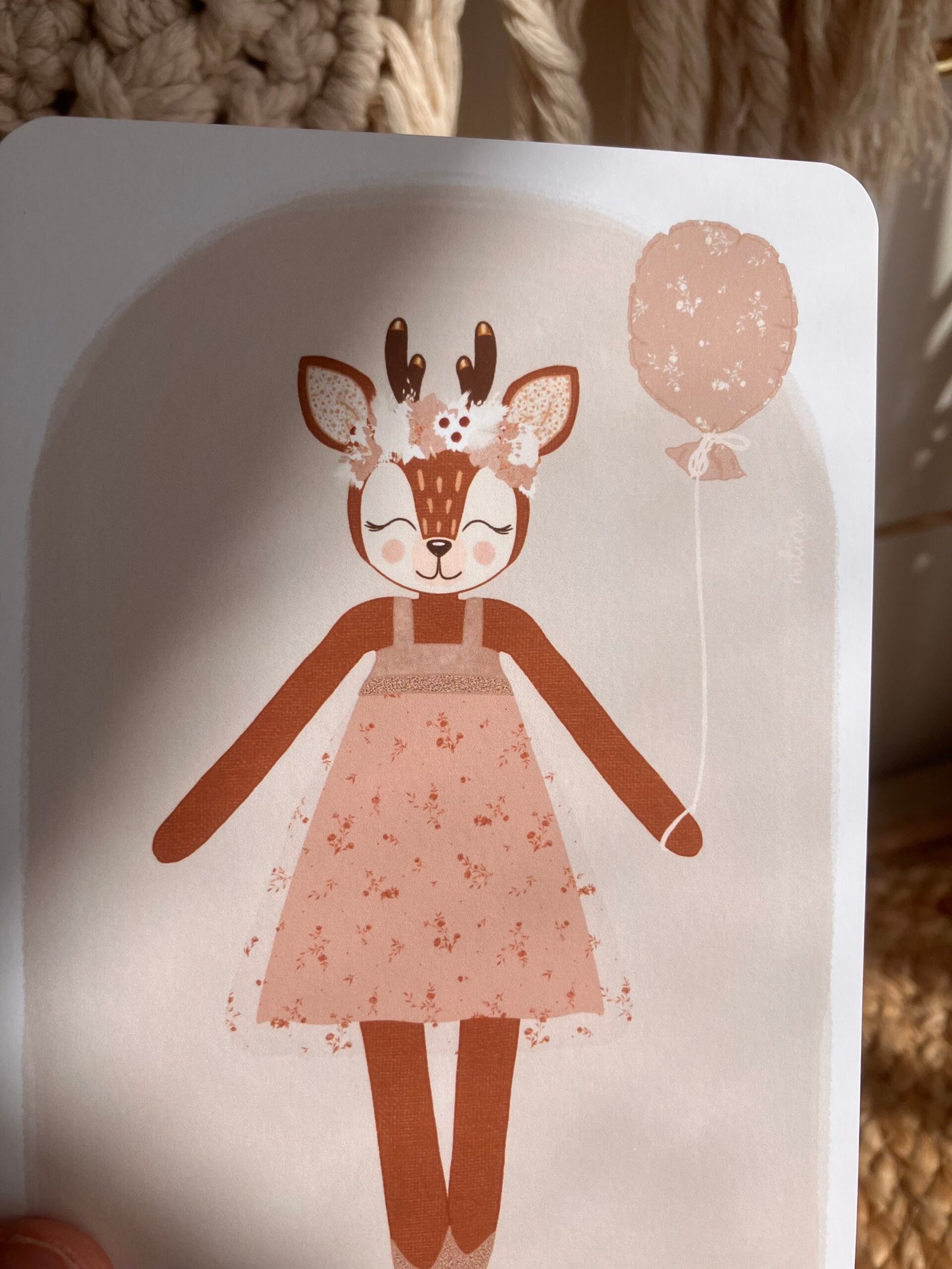 Cette magnifique petite biche aux couleurs chaudes, douce et bohème décorera à merveille vos jolis murs ou sera une petite attention idéale à offrir . Cette illustration est réalisée par mes soins avec beaucoup de détails.