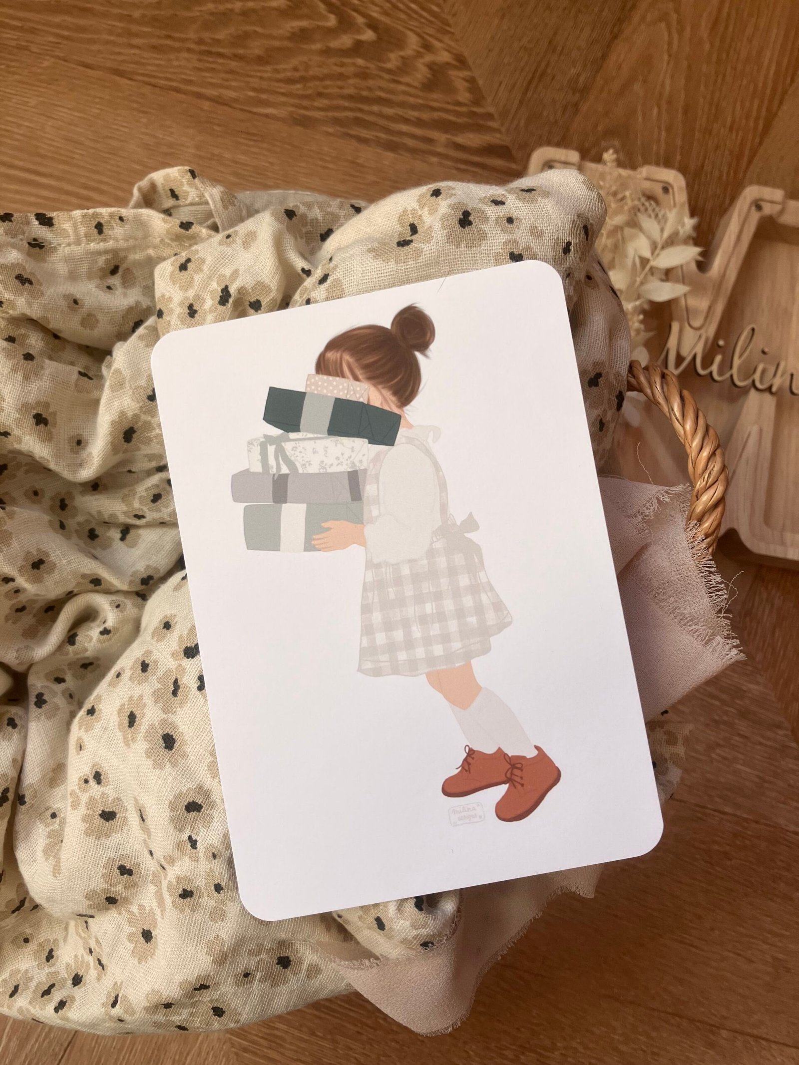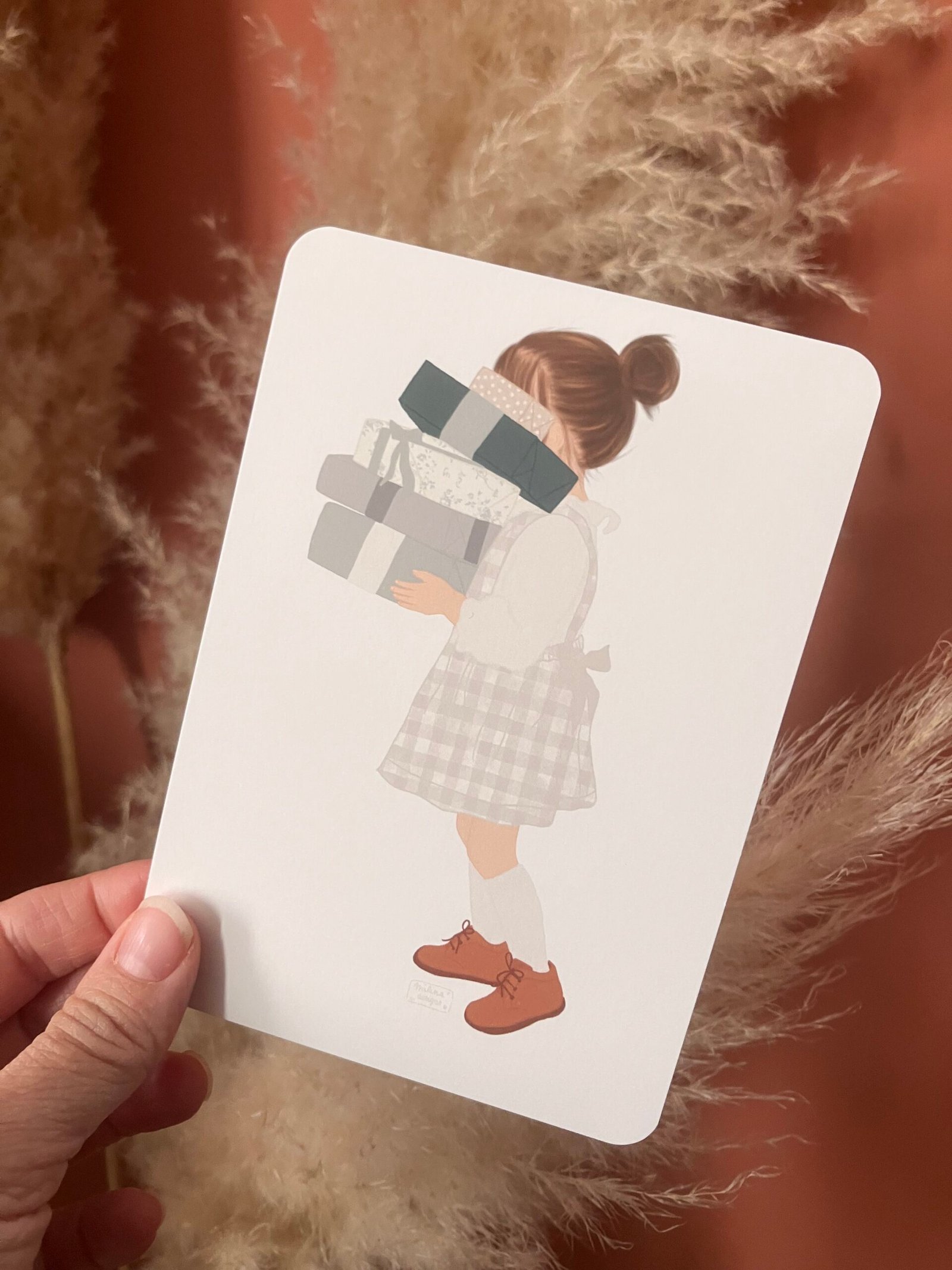 Cette douce carte décorera à merveille de jolis murs ou sera une petite attention idéale à offrir . Cette illustration est réalisée par mes soins avec beaucoup de détails.